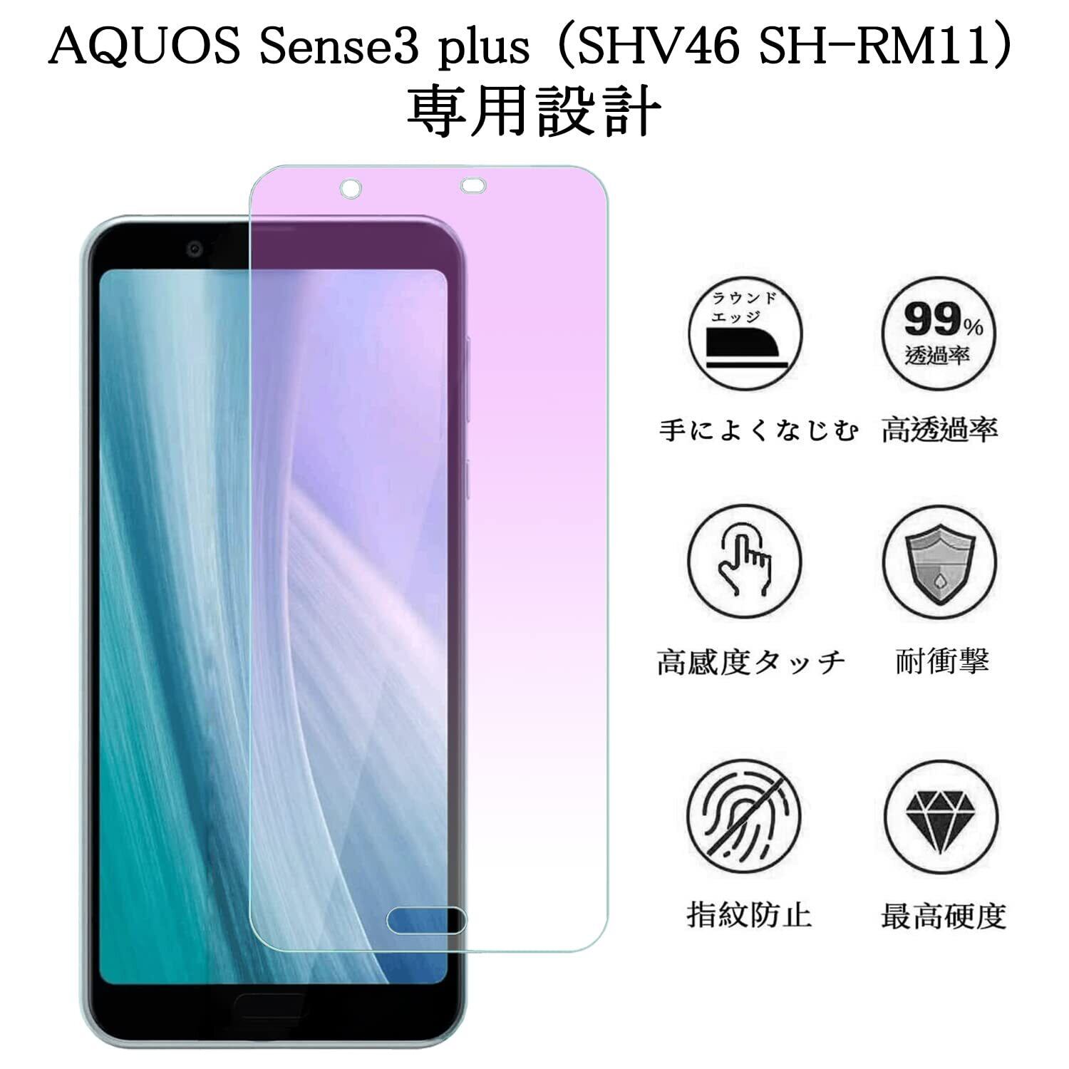 【ブルーライトカット】 AQUOS Sense3 plus ガラスフィルム ブルーライト アクオスセンス3 プラス SHV46 SH-RM11 強化ガラス 液晶保護フィルム 【指紋防止/干渉しない/貼り付け簡単/硬度9H/2枚セット】