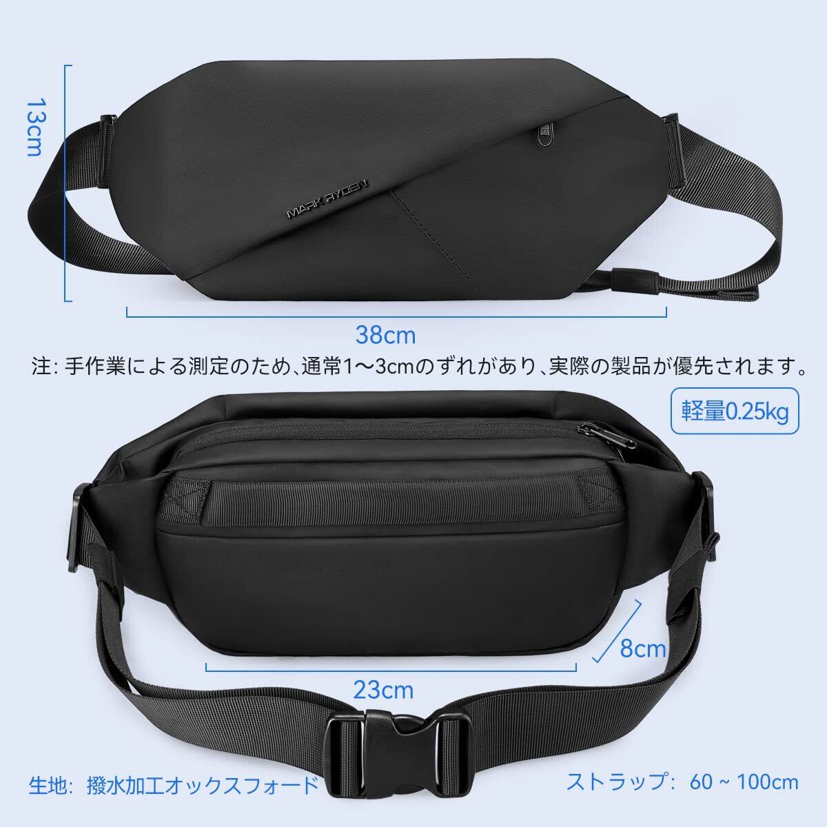 Muzee ボディバッグ 軽量 スポーツショルダーバッグ エナメルバッグ 肩掛けバッグ 通勤 ウエストポーチ 多機能 ヒップバッグ 防水 スポーツバッグ ワンショルダー おしゃれ 自転車 旅行 小型 斜めがけ ブラック