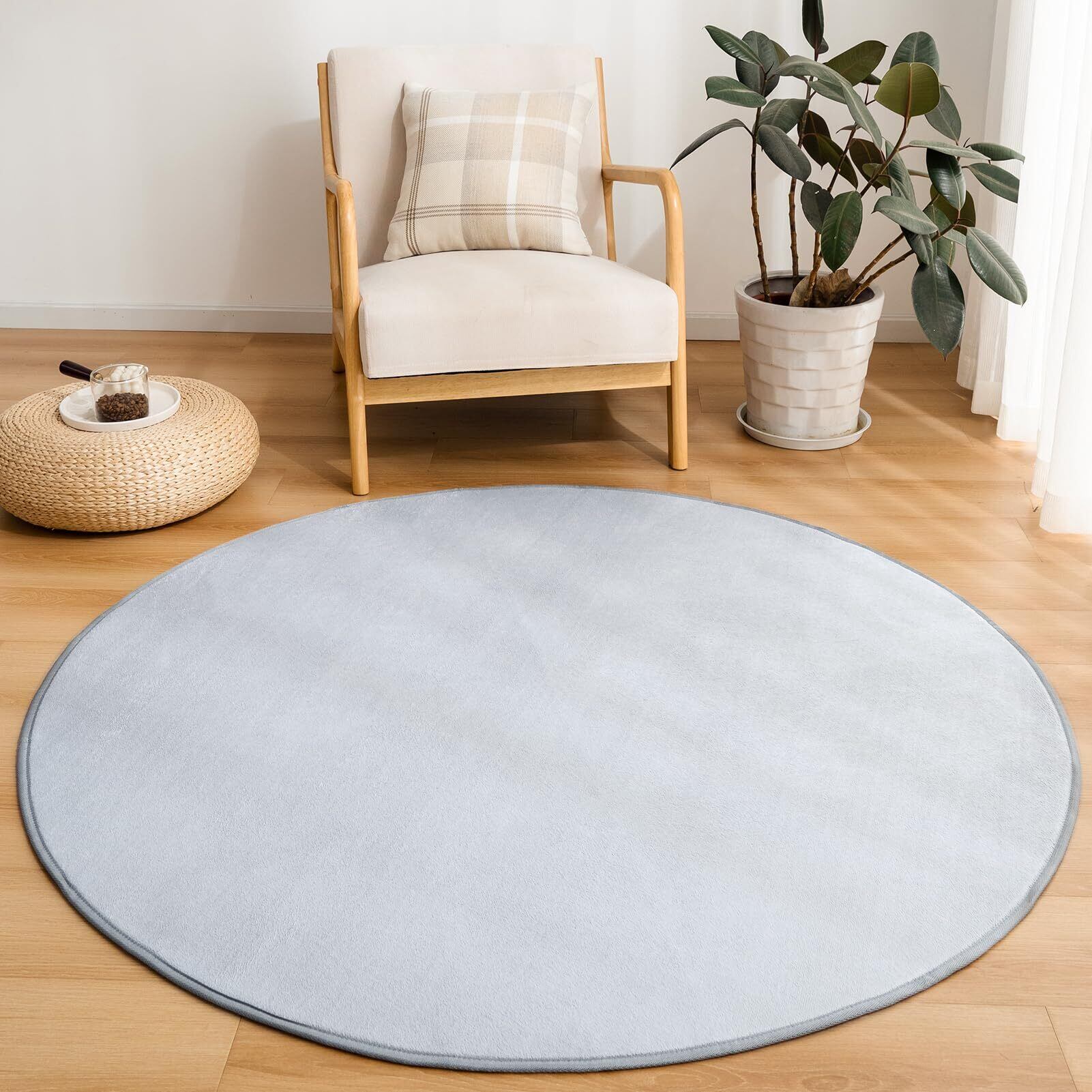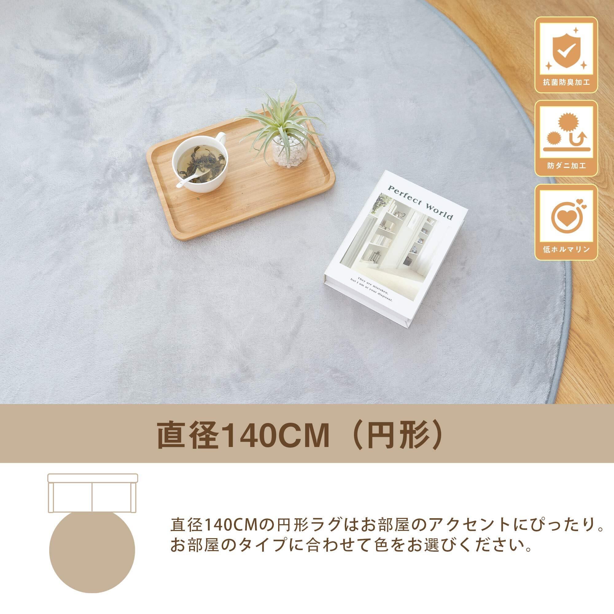 VK Living ラグ 円形 カーペット ラグマット 直径140cm 洗える 滑り止め付 防ダニ 抗菌防臭 1年中快適に使えるタイプ 掃除しやすい フランネル 絨毯 床暖房 ホットカーペット対応 可愛い 丸 お手入れ簡単 ライトグレー VKJ142-140R-LGY