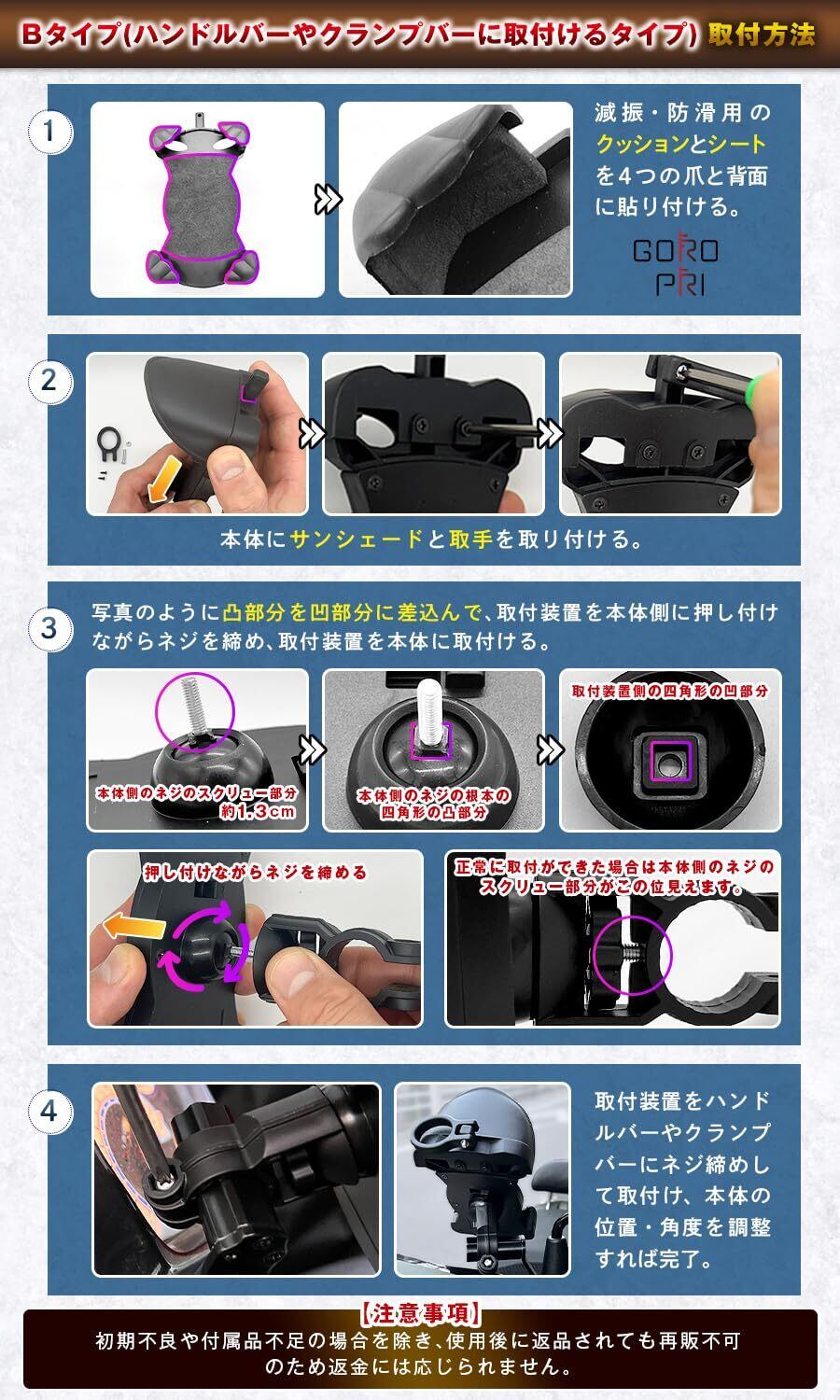 【GOROPRI】原付 スマホホルダー サンシェード付き スクーター バイク用 自転車 日除け 雨除け 第2世代 日本語説明書付き (Bタイプ※ハンドルバーやクランプバーに取り付けるタイプ)