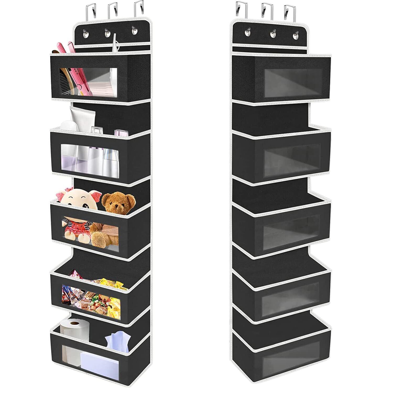 ウォールポケット Whonor ドア掛け収納式ポケット 5段の大容量 透明窓付き 壁掛け収納ポケット 吊り下げ収納 頑丈な不織布で作られた 耐用 小物収納 おもちゃ 雑誌 書類/漫画などの収納 3x弾性フック付き(黒い)