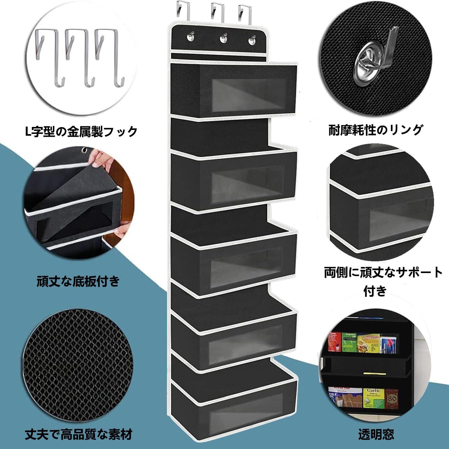 【頑丈な構造】--収納ポケットの表面が厚くて丈夫な不織布で作られております。各ボックスの底とサイドには付属の厚紙製底板を入れられるようになっているので、ボックスの形状がしっかり保たれます。ポケット部分の幅が手前側に広いので、結構な量を入れられて使いやすい。少し重量があるものを入れるにも撓みません!