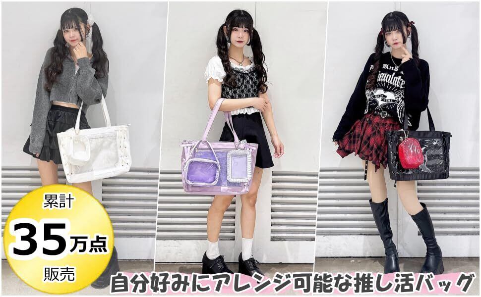 [ウィゴー] 痛バッグ 痛バ 【Sサイズ】 レースアップ トートバッグ バッグ デコバッグ 鞄 A4 クリアバッグ クリア 推し活 推し活グッズ 推し活バッグ ライブ イベント 春 夏 秋 冬 プレゼント ギフト レディース F タイプA ブラック
