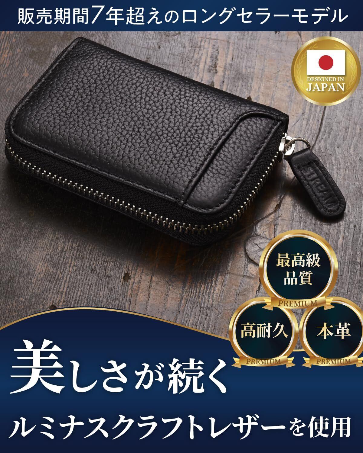 【美しさが続くルミナスクラフトレザー】小銭入れ コインケース メンズ レディース 本革 小さい 財布 キーリング付き [STREAM](ブラック)
