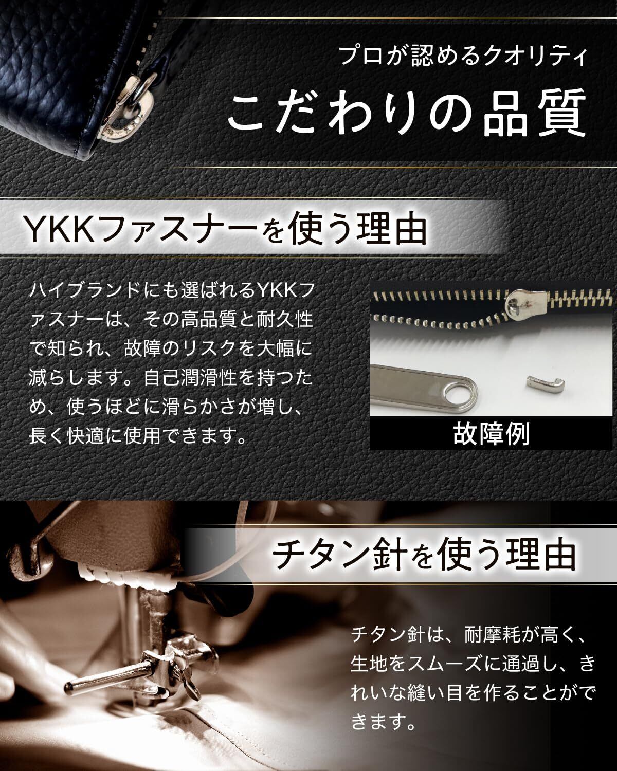 【YKKファスナー】多くの財布が故障する原因の一つであるファスナー。こちらのコインケースでは、滑らかな開閉が可能なYKK社製のファスナーを採用しており、そのため耐久性が向上し、長期間使用できる特長があります。