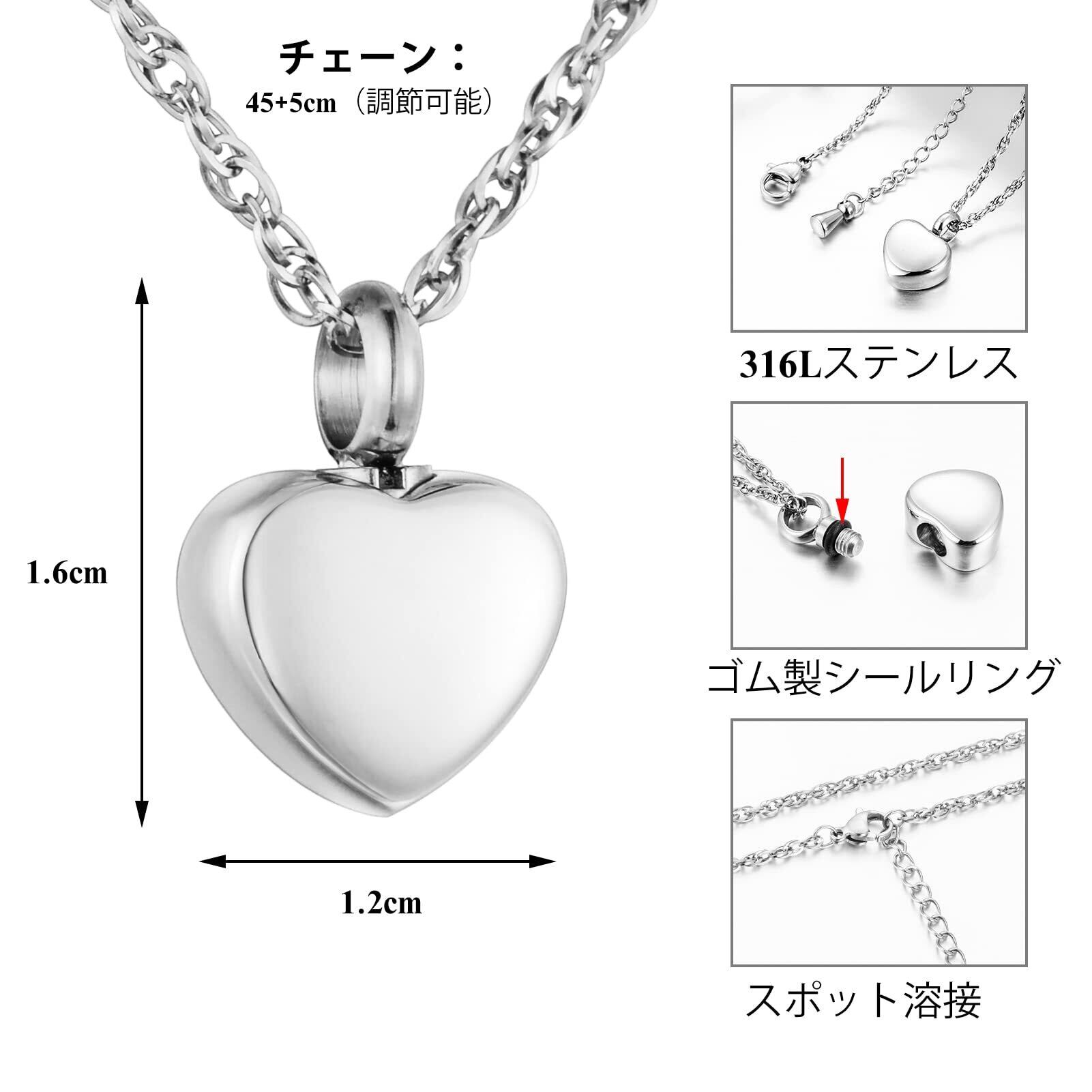 ハート記念ペンダント:本体は中空で、付きているのツールを使うことで、大切な人とペットちゃんの遺骨や遺髪を簡単に入れることができます。ネジにはゴム製シールリングがありますので、水が浸入する心配はありません。