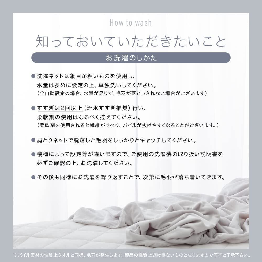 【 敷きパッド のお手入れについて】 素材と製造工程の特性上、使い始めは毛羽が発生することがございますので、ご使用前にお洗濯されることをおすすめいたします。お洗濯は敷パット を目の粗い洗濯ネットに入れて、十分な水量での単独洗いをおすすめします。屑取りネットの使用も有効です。柔軟剤は毛羽落ちを誘発することがありますのでなるべく使用をお控えください。生地に負担がかかり、敷パッドの劣化を早めるためタンブラー乾燥はお避けください。【メーカー保証】初期不良対応 / 【仕様】洗濯可(ネット使用)/ 【メーカー】株式会社AQUA(旧社名:株式会社ナイスデイ)は創業125年以上を誇る日本毛織株式会社(東証プライム上場・通称ニッケ)のグループ企業です。【その他】ご購入のタイミングにより、梱包形態(袋・副資材等)が変更となる場合がございます。