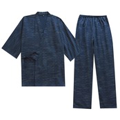 【デザイン】優しい和風のルームウェア。便利な前開きタイプで着脱がしやすく、抜群の着心地の良さを味わえます。全体がゆったりとした作りで、上着は内紐と外紐を結んでご着用いただくタイプですので、お客様のサイズに合わせて調節していただけるおくつろ着です。パンツはウェストゴム入り伸縮性に優れお腹を締め付けない。
