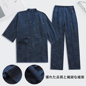 【サイズ】「M」、「L」、「XL」。表面にジャガード織り特有の凹凸が特徴的な、2重仕立てガーゼがやさしいオトナ仕様の細縞模様甚平です。