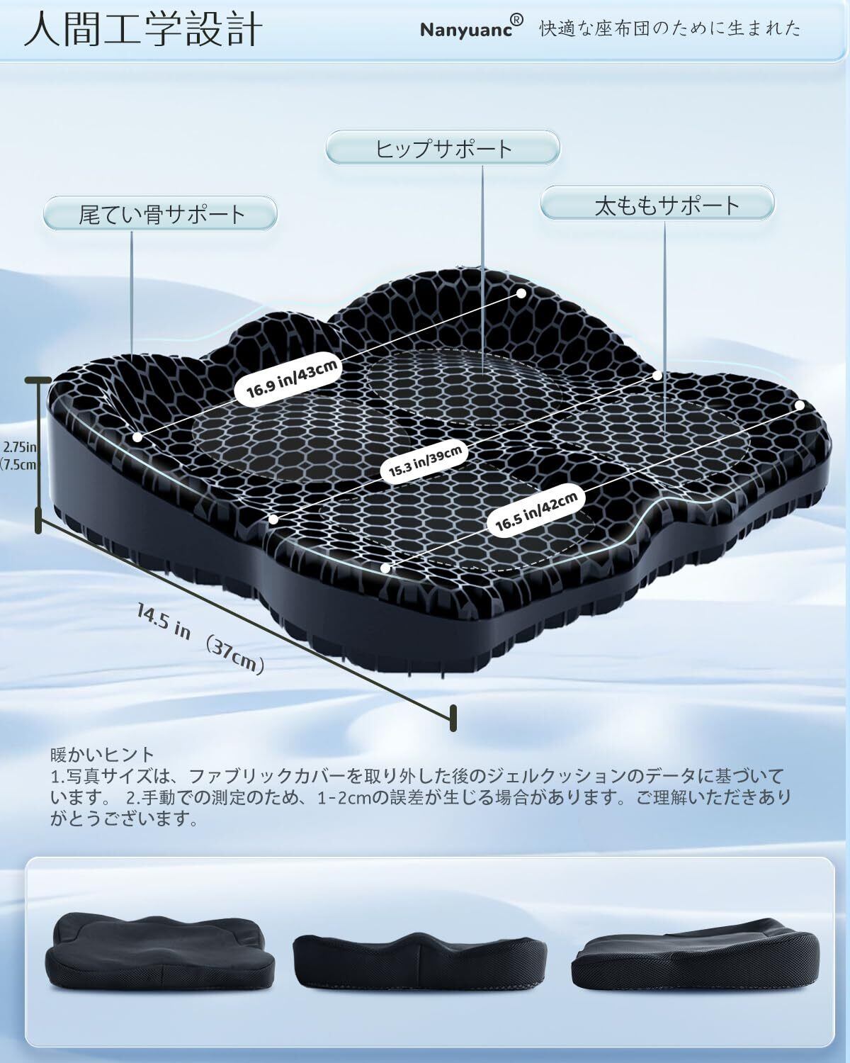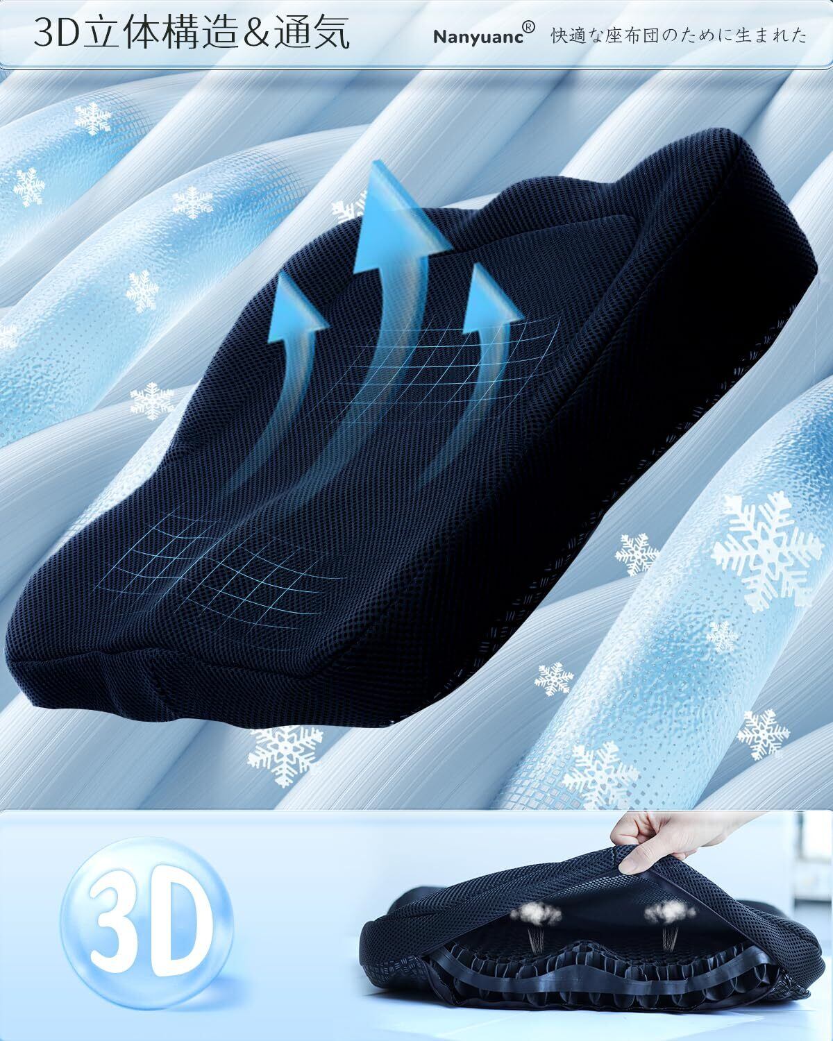 【2025年最新版・自社オリジナル3D立体ゲルクッション】 Nanyuancは、これまで様々なゲル製品に取り組んできた実績と、お客様からの貴重なご意見を元に、待望の新商品をお届けします。この疲れ知らずの座り心地を追求した3Dデザインのジェルシートクッションです。体の曲線に完璧にフィットし、理想的なサポートを提供します。まるで自分専用のクッションに座っているかのような感覚を味わえます。