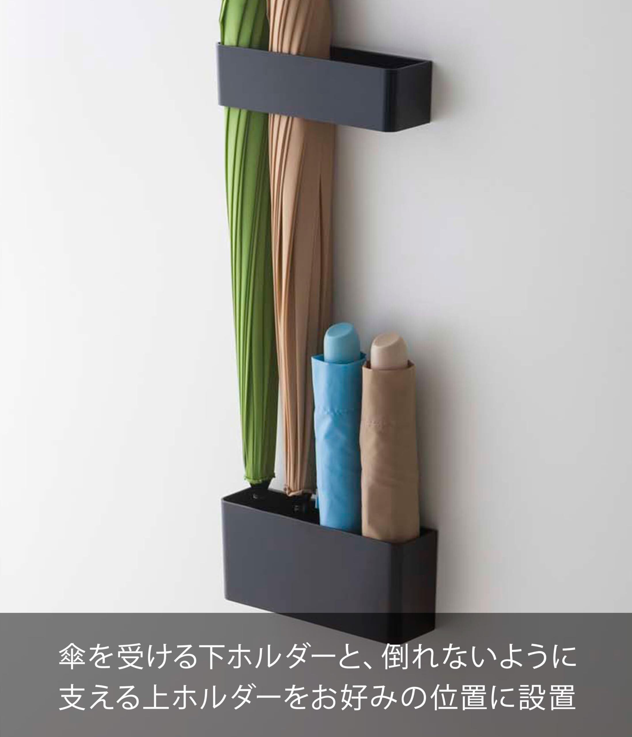 山崎実業(Yamazaki) マグネット アンブレラスタンド ブラック (上)約W18.8×D5×H5cm (下)約W18.5×D5×H8cm スマート smart 傘立て 省スペース 7366