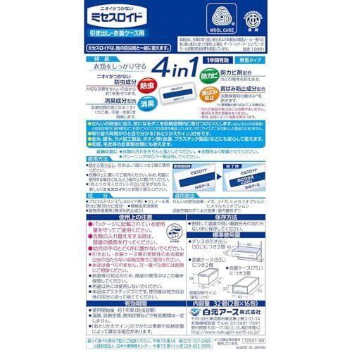 白元アース 衣類防虫剤 ミセスロイド 引き出し・衣装ケース用 32個入 無香 無臭 1年間有効 収納空間のダニよけ効果付き 虫除け 防カビ 消臭 黄ばみ防止