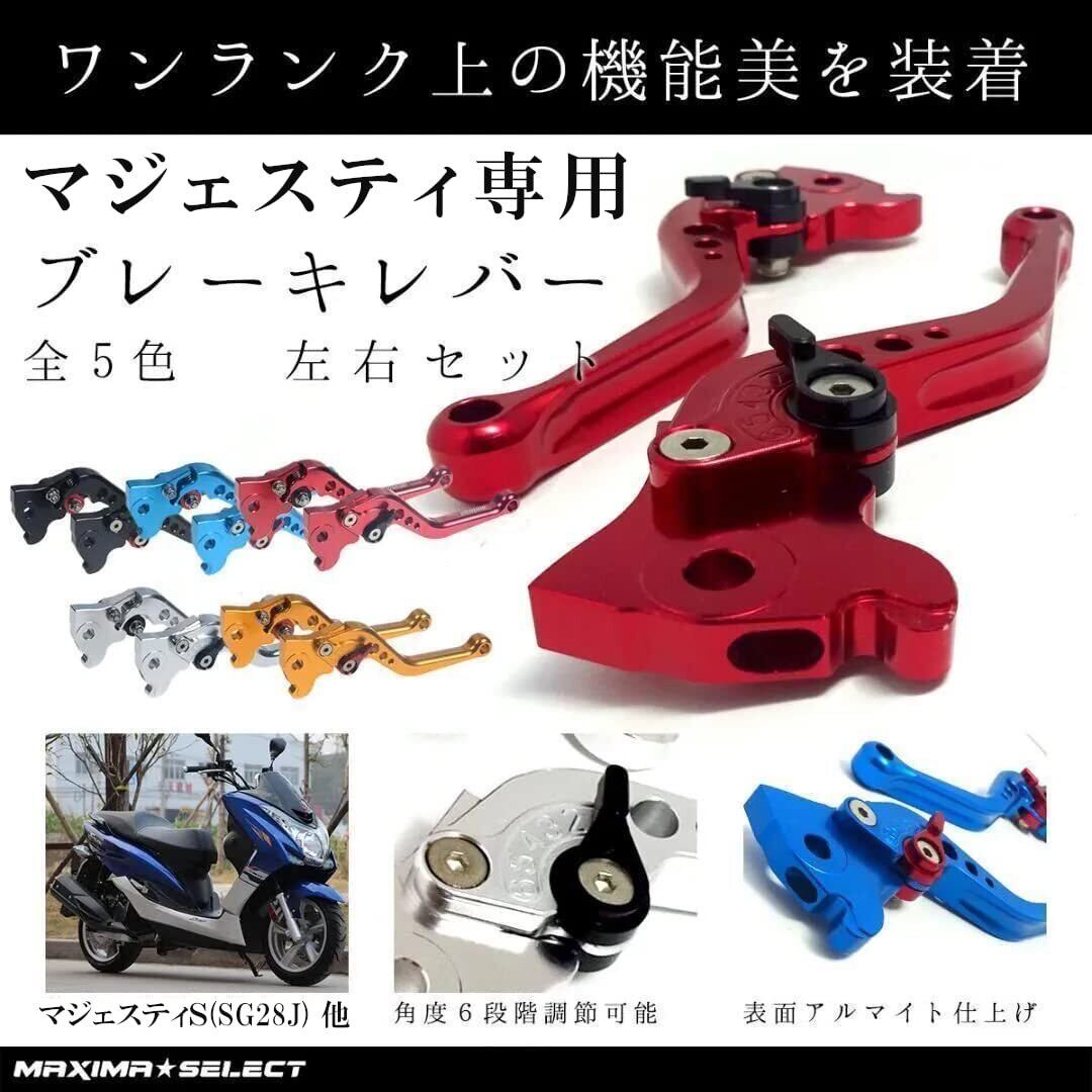 MAXIMASELECTブレーキレバー クラッチレバー 左右セット 角度機能調整付き 『レッド』マジェスティS シグナスX SR BW'S R SMAX