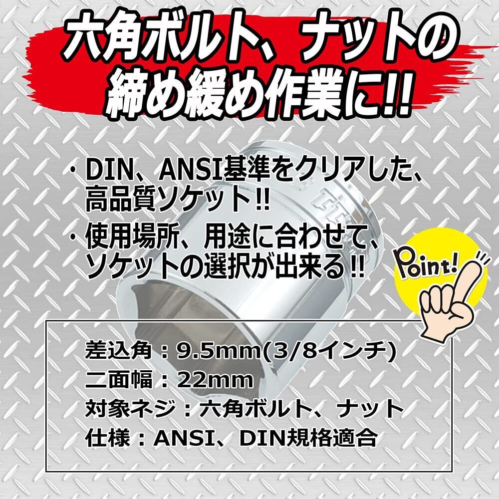 SK11(エスケー11) ソケット 6角 S3-22 二面幅:22×差込角:9.5mm 1個