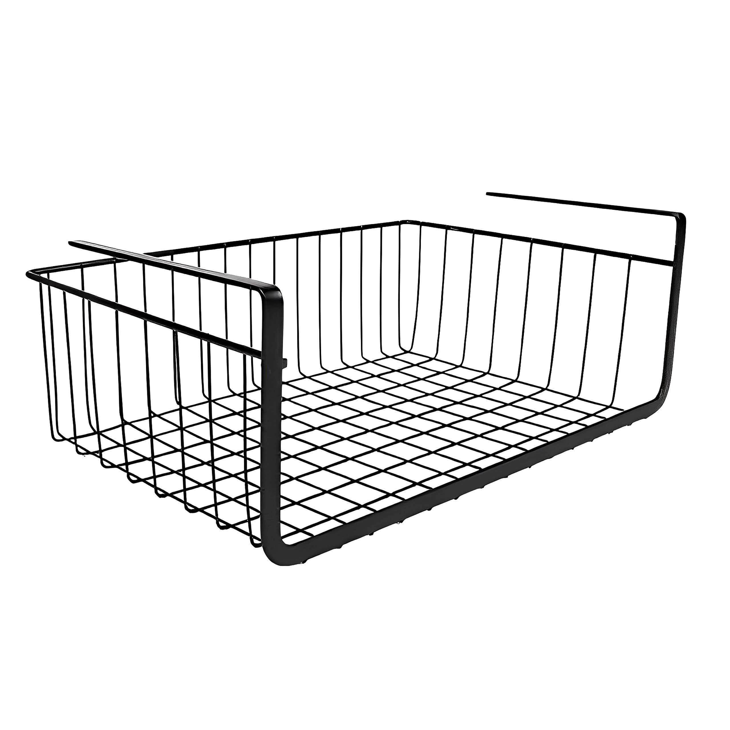 East Leaf 吊り下げ収納 吊り下げ棚 吊り戸棚 収納 カゴ バスケット スチール製 工具不要 キッチン クローゼット 40x24x14cm ブラック