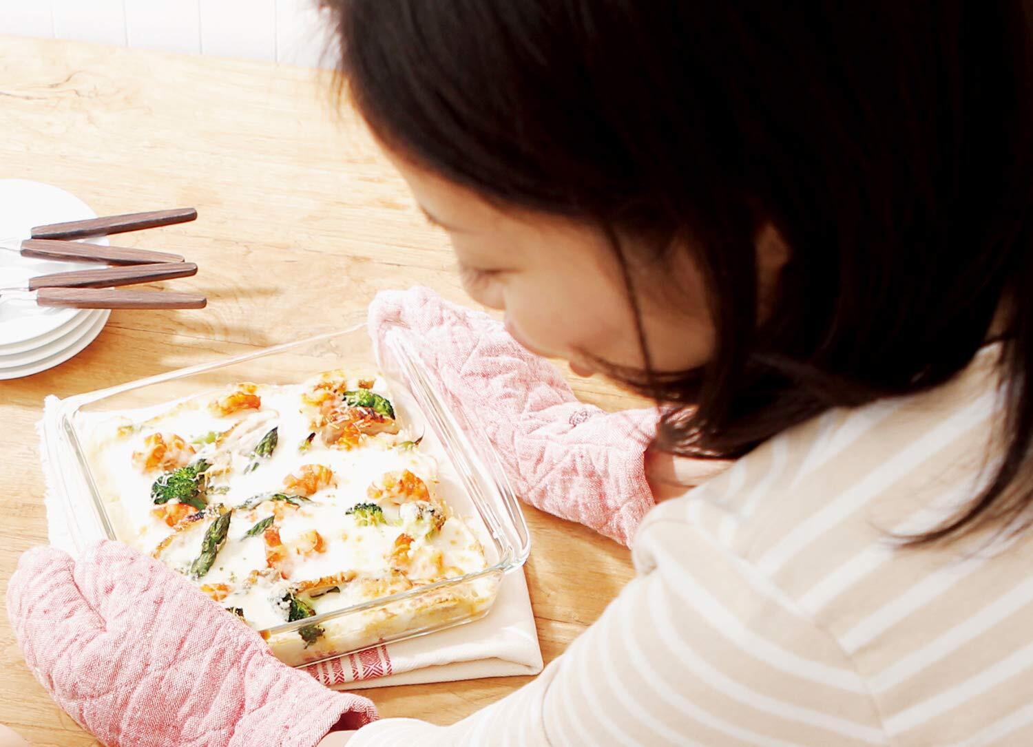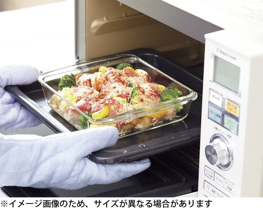 温めたり冷やしたりも大丈夫な耐熱ガラス製のオーブン皿。冷蔵庫から取り出してそのまま電子レンジやオーブンへ