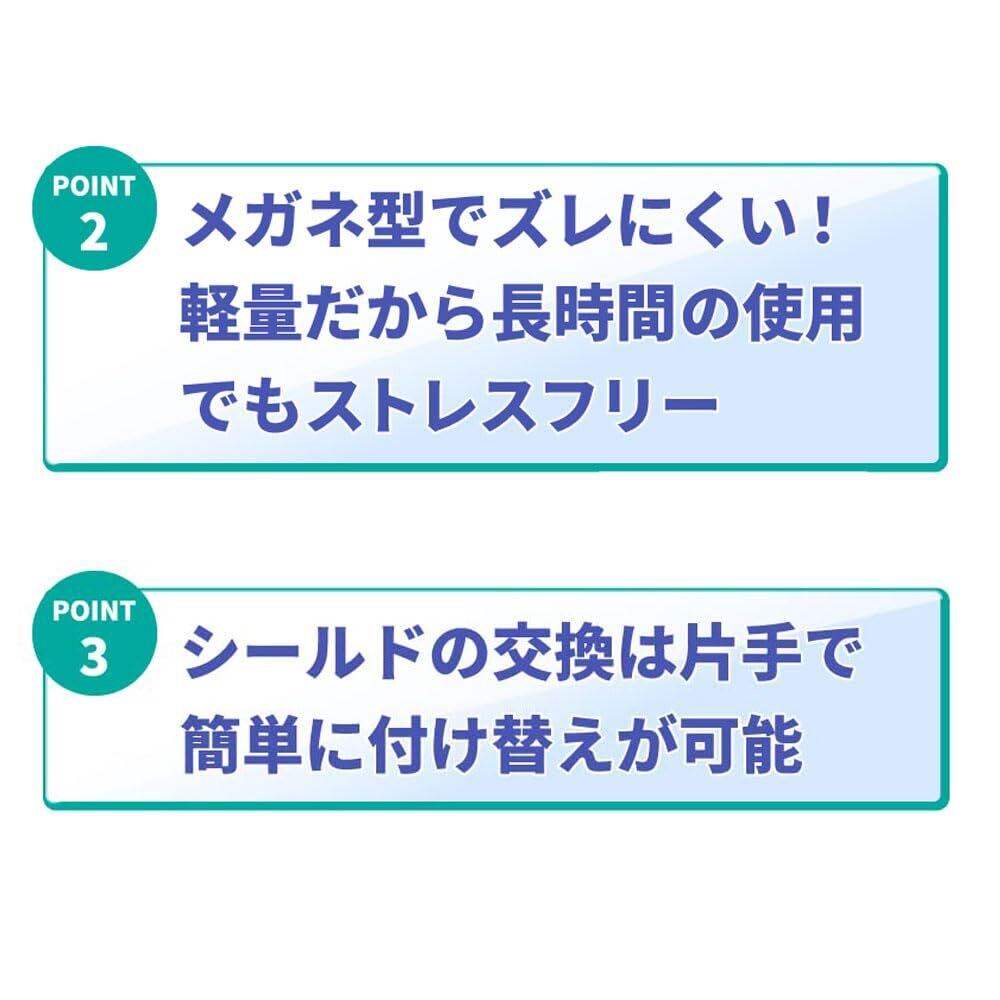 アルコール清拭ができる再利用可能なフレームと使い捨てシールドのセットです。