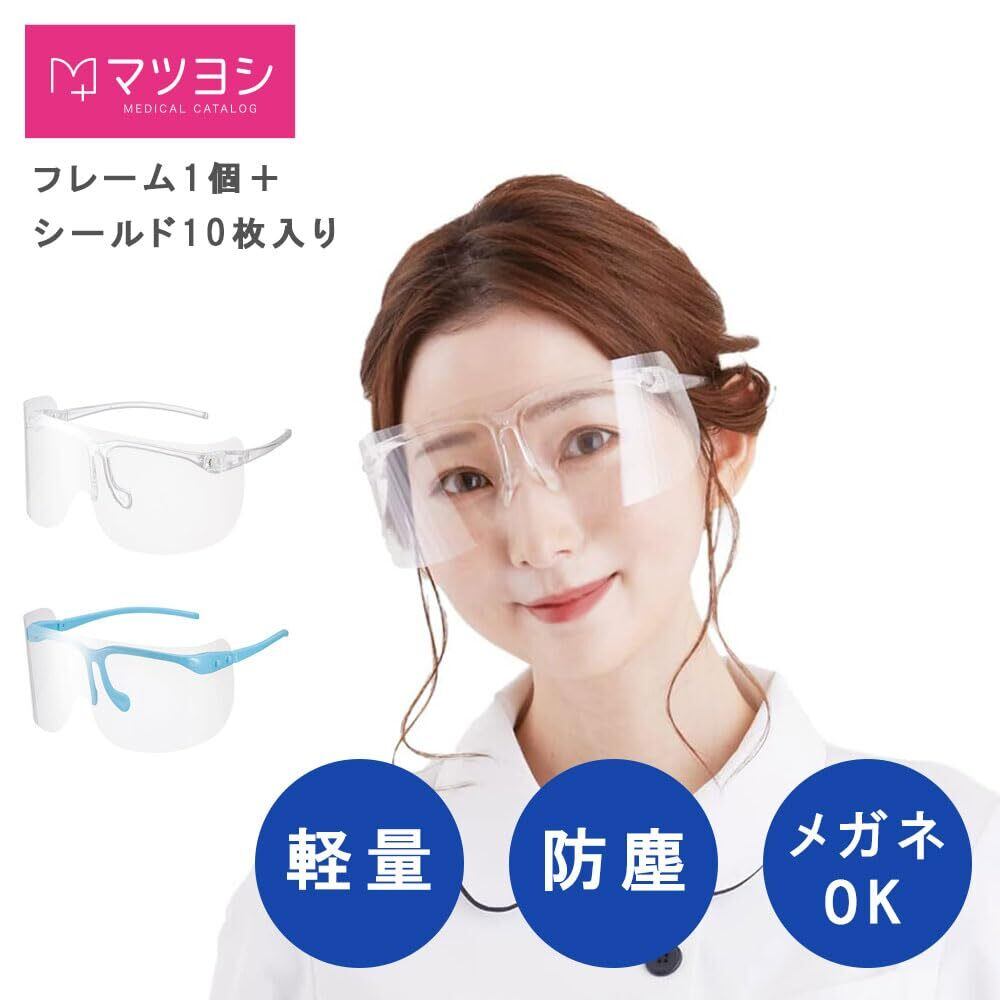 [マツヨシ] メディカルフェイスシールド ハーフフェイス 10枚 セット クリア MY-7490C 曇り止め 感染対策 医療用 眼鏡 眼鏡併用 ズレにくい 男女兼用 アイシールド フェイスシールド シールド 病院 クリニック 松吉医科器械