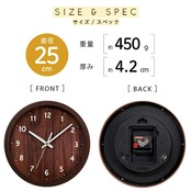アイリスプラザ 掛け時計 壁掛け 静音 ナチュラル 直径25cm/非電波 文字盤あり チクタク音がしないスイートムーブメント 滑らかに秒針が動く 軽量450g 薄型厚み4.2cm アナログ 単三電池1本で動く ナチュラルな質感 一人暮らし シンプルデザイン メーカー保証1年付き PWCR-25-M