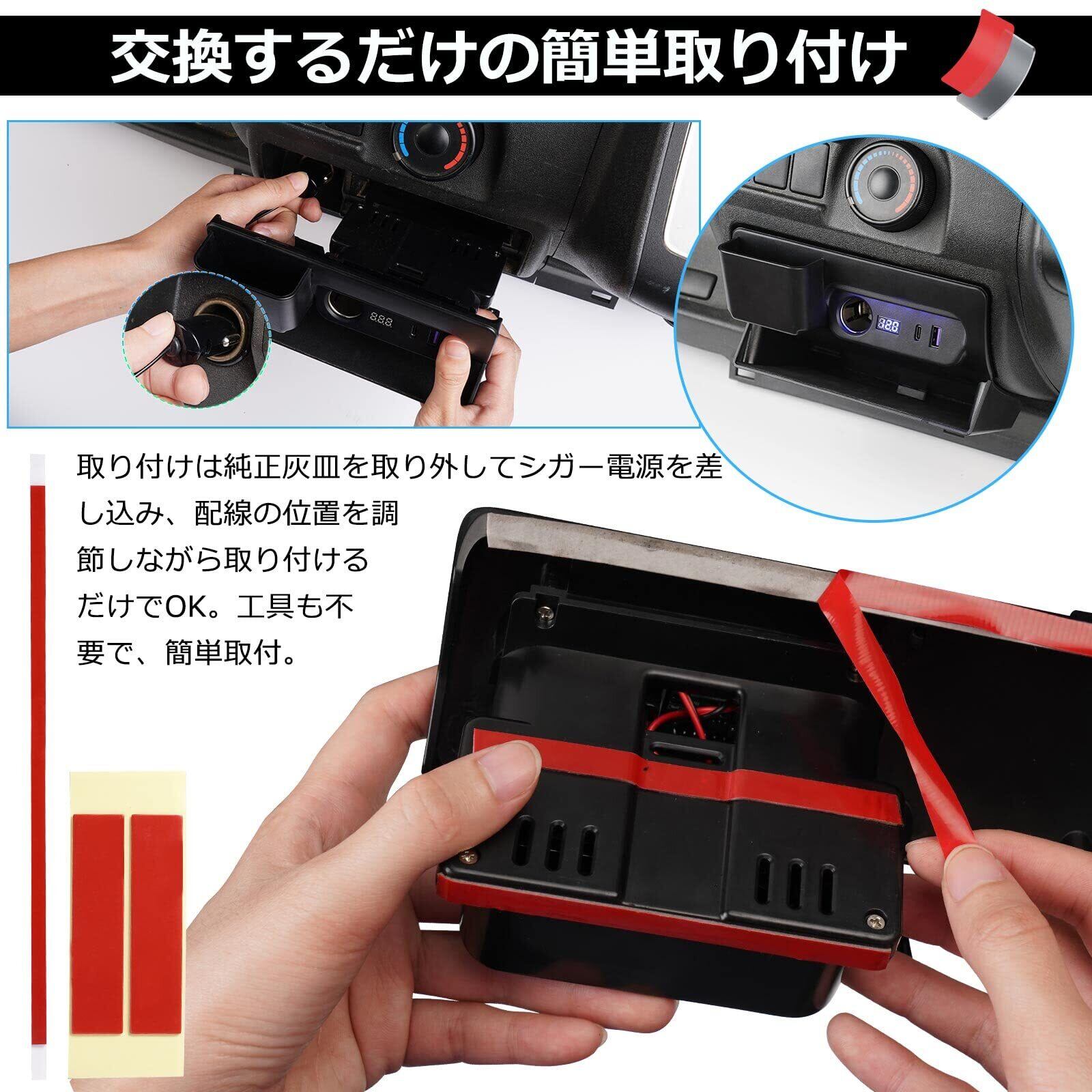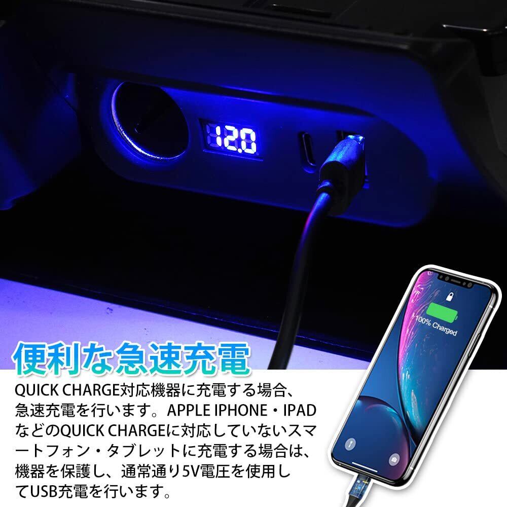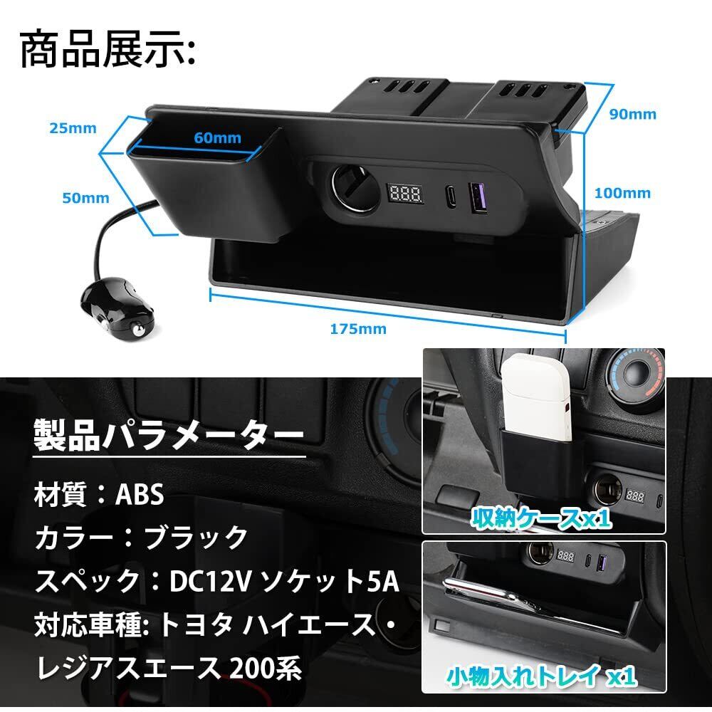 Mixsuper トヨタ ハイエース レジアスエース 200系 増設電源ユニット 増設用キット 分配器 USB QC3.0 + Type-C PD シガーソケット 急速充電 電源ユニット TOYOTA HIACE 200 2004年8月~ 電源ソケット 車両電圧計付 電源増設 トレイ付き USB充電 取り付け簡単 ブルー発光 1PCSセット シガーソケット (トヨタ ハイエース 200系, USB QC3.0 + Type-C【トレイ付き】)