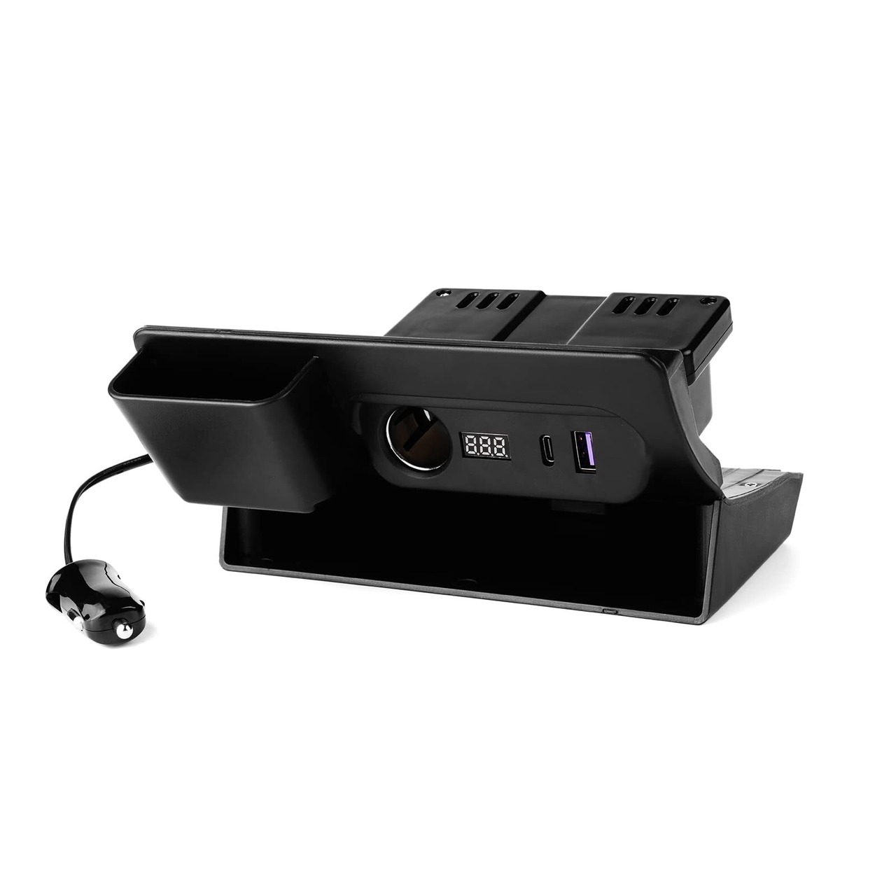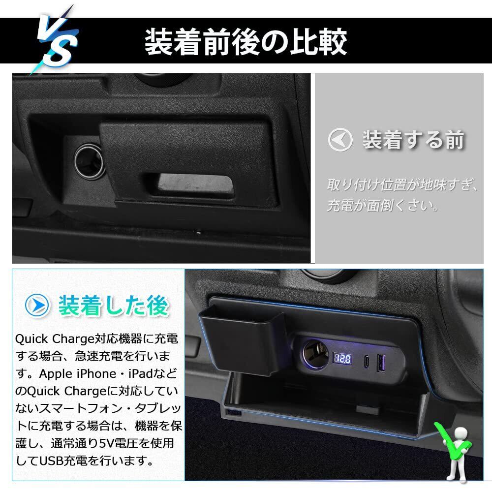 4.【フットライト付・車両電圧計付・小物収納ケース】 ブルーLEDフットライト付きます。足元を照らします。夜間の視認性もよく、小物をお探しの際にも便利です。車両電圧計付き、車両側の電圧がすぐに確認することができます。また、 アイコスと名刺など入れる収納を追加して便利なアイテムです。