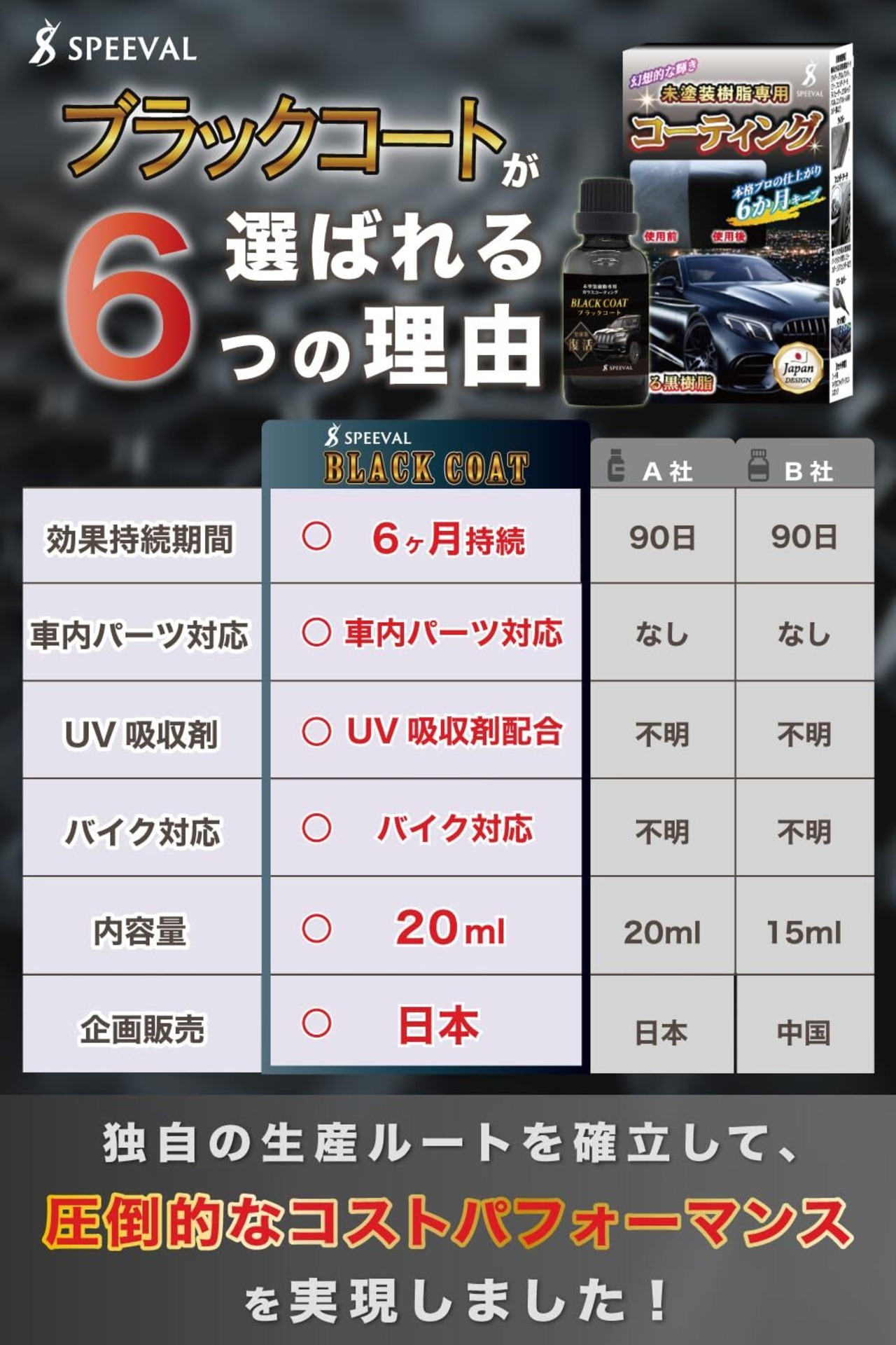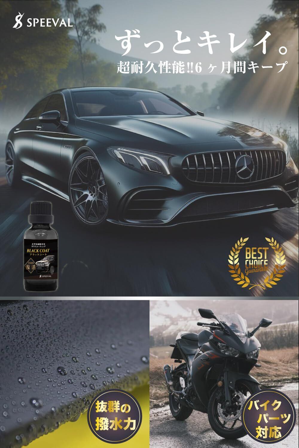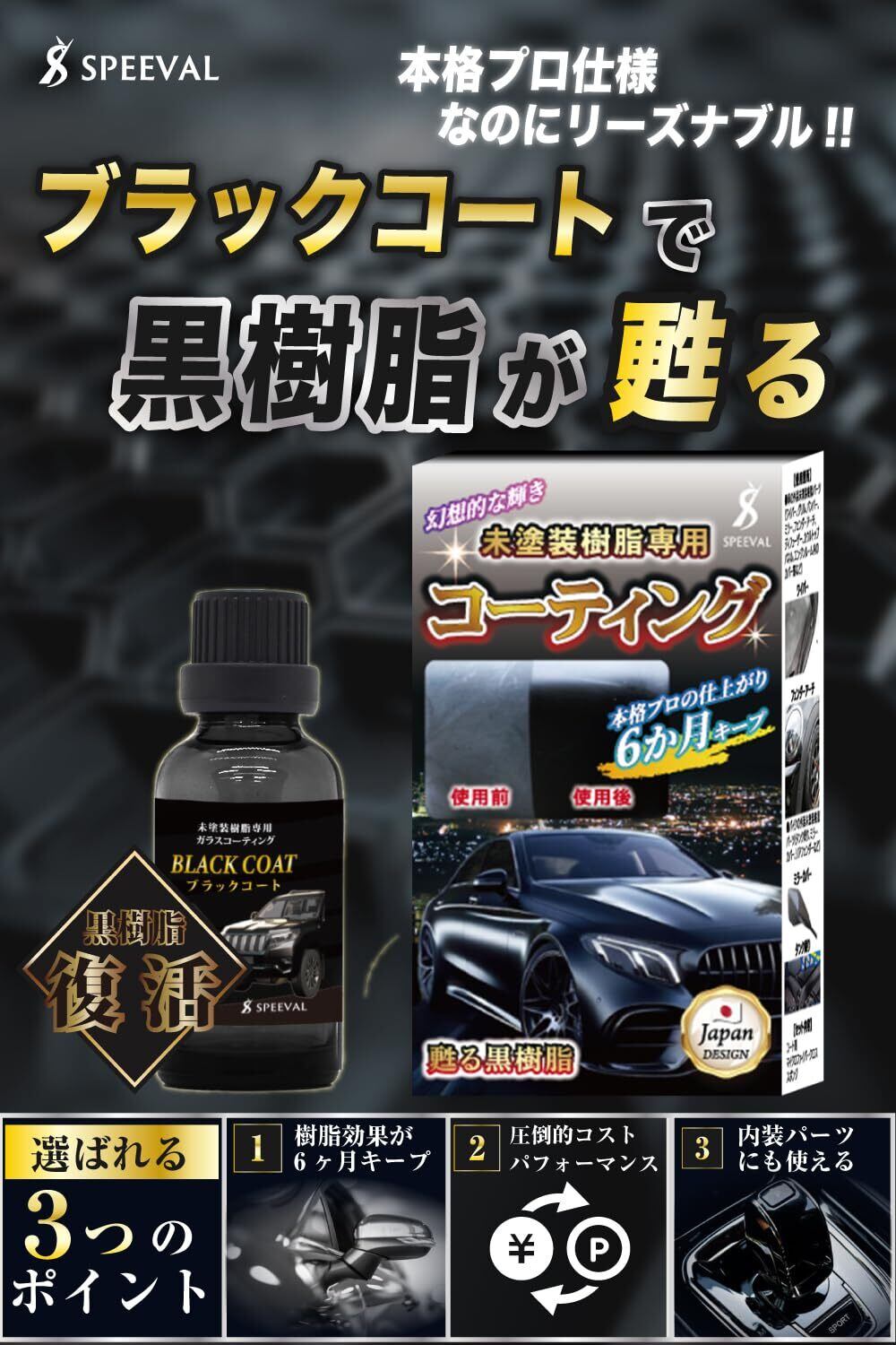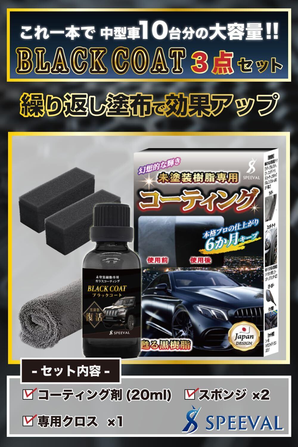 SPEEVAL 未塗装樹脂復活コーティング剤 20ml ブラックコート 黒樹脂 劣化防止 樹脂復活剤 車 バイク 6ヶ月間 超耐久 超撥水