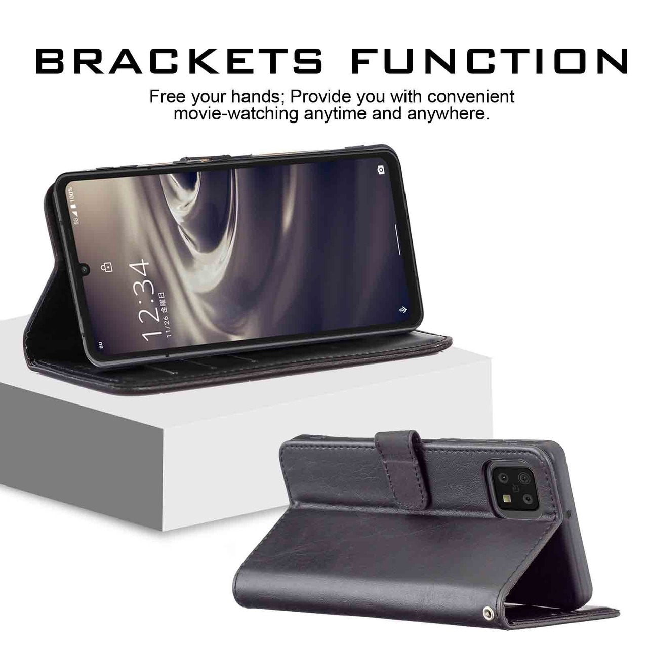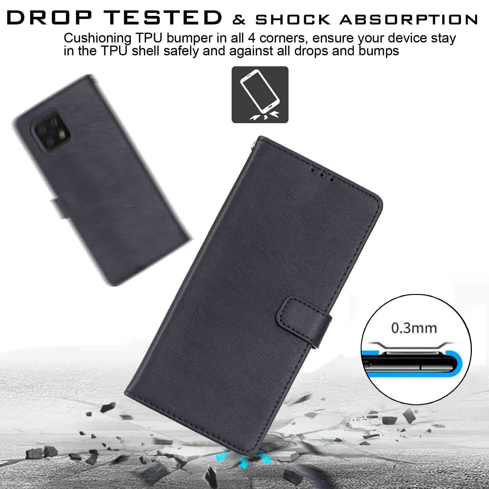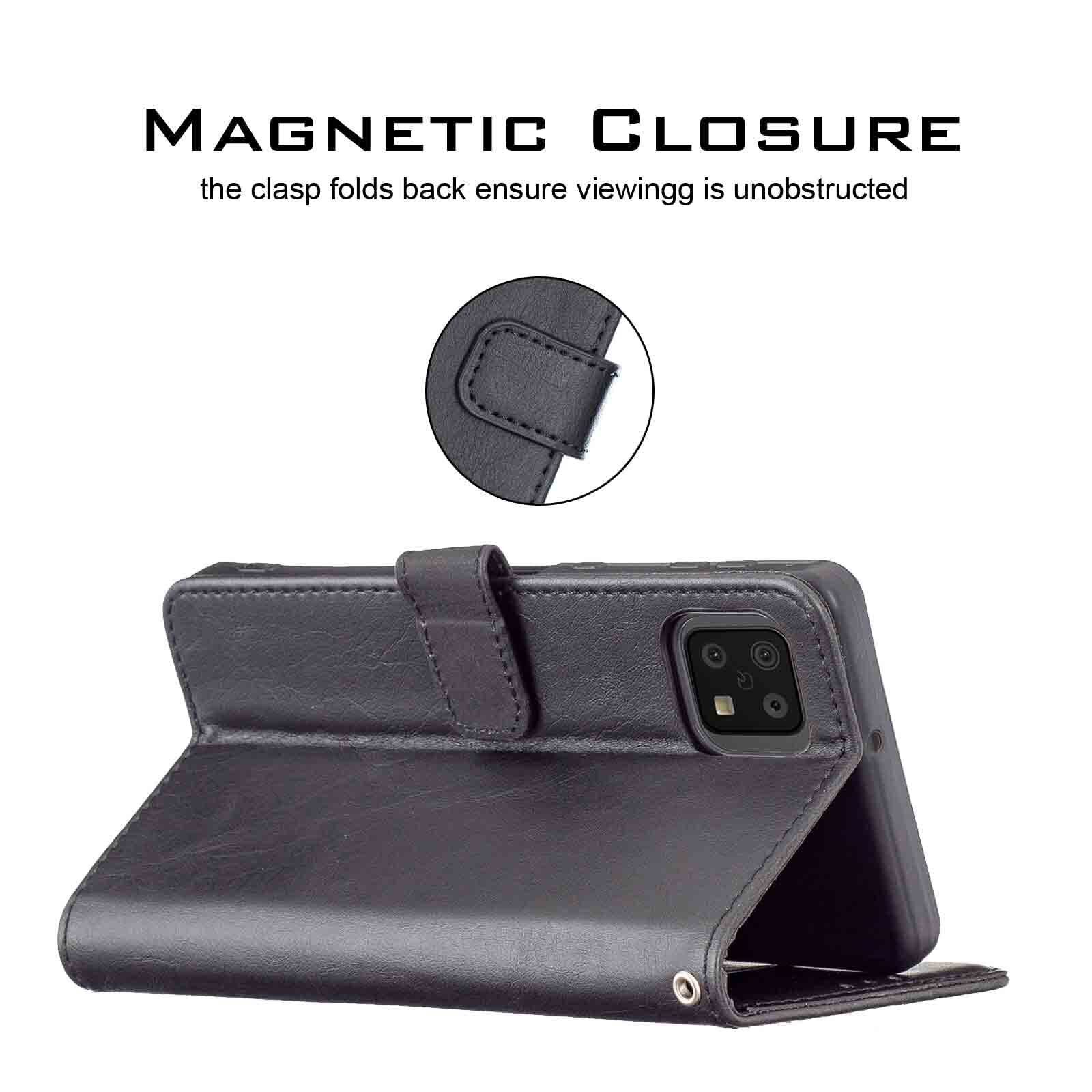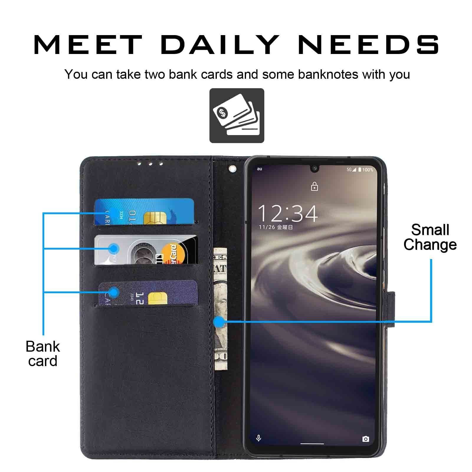 【Anrek】SHARP AQUOS sense6 / docomo SH-54B / au SHG05 兼用 ケース 手帳型 カバー ( ブラック ) シャープ アクオス センス6 ドコモsh54b shg05 sense6 手帳型ケース カード収納 サイドマグネット スタンド機能付き 全面保護 財布型 PUレザー シンプル ビジネス風sense6 BLACK