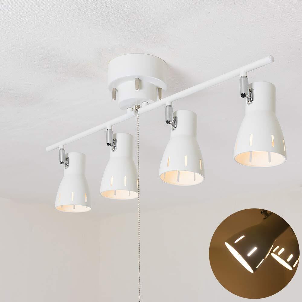 Jiya シーリングライト 4灯 E26口金 LED電球対応 シーリングスポットライト インダストリアル 天井照明 北欧 おしゃれ カフェ風 取付簡単 角度調節 プルスイッチ リビング 寝室 居間 ダイニング照明 電球別売 ホワイト