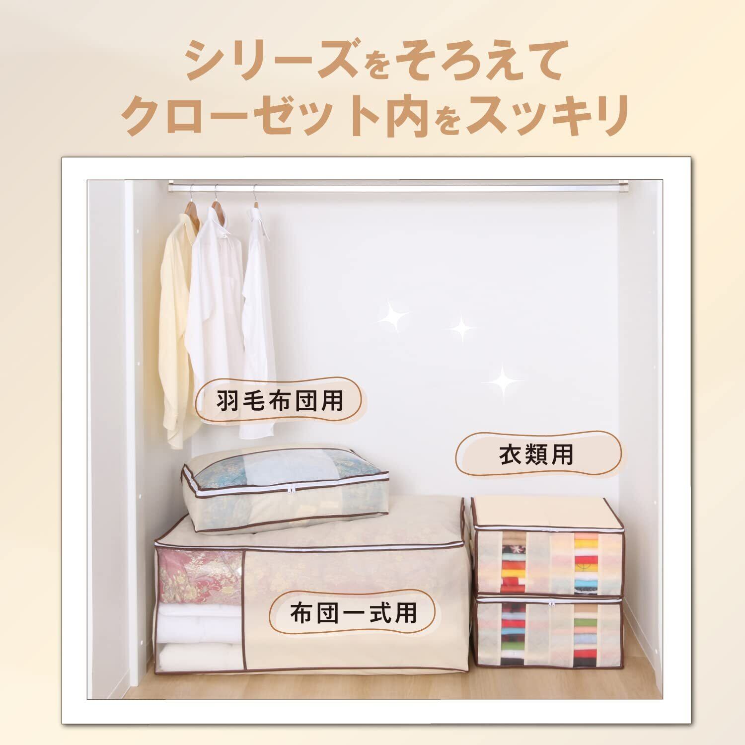 アストロ 布団収納袋 ベージュ シングルサイズ用 布団一式保管 敷き布団 掛け布団 収納ケース 通気性の良い不織布 ふとん保存袋 まとめて収納 ホコリ防止 透明窓 持ち手付き 131-46