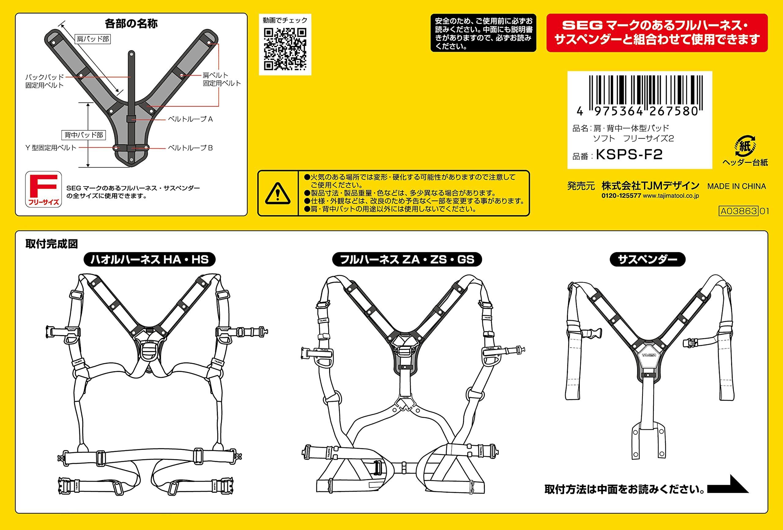 TJMデザイン(TJM Design) タジマ 安全帯フルハーネス・サスペンダー用 肩・背中一体型パッド しなやかに体にフィットするソフトクッション X型・Y型ハーネスのどちらにも使える フリーサイズ KSPS-F2