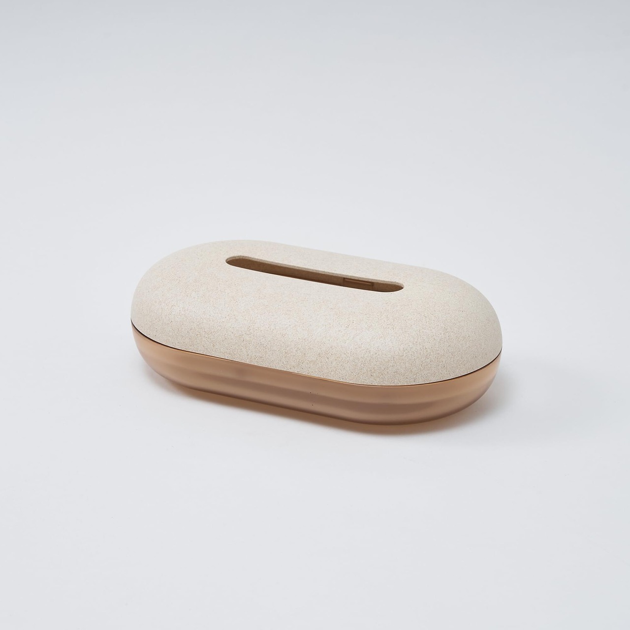 【残量が見えるツートーンの装い】下半分が透明になっており、さりげなくティッシュの残量を確認できます。上半分のニュアンスのある素材とカラークリア素材のツートーンでオブジェのような装いです。