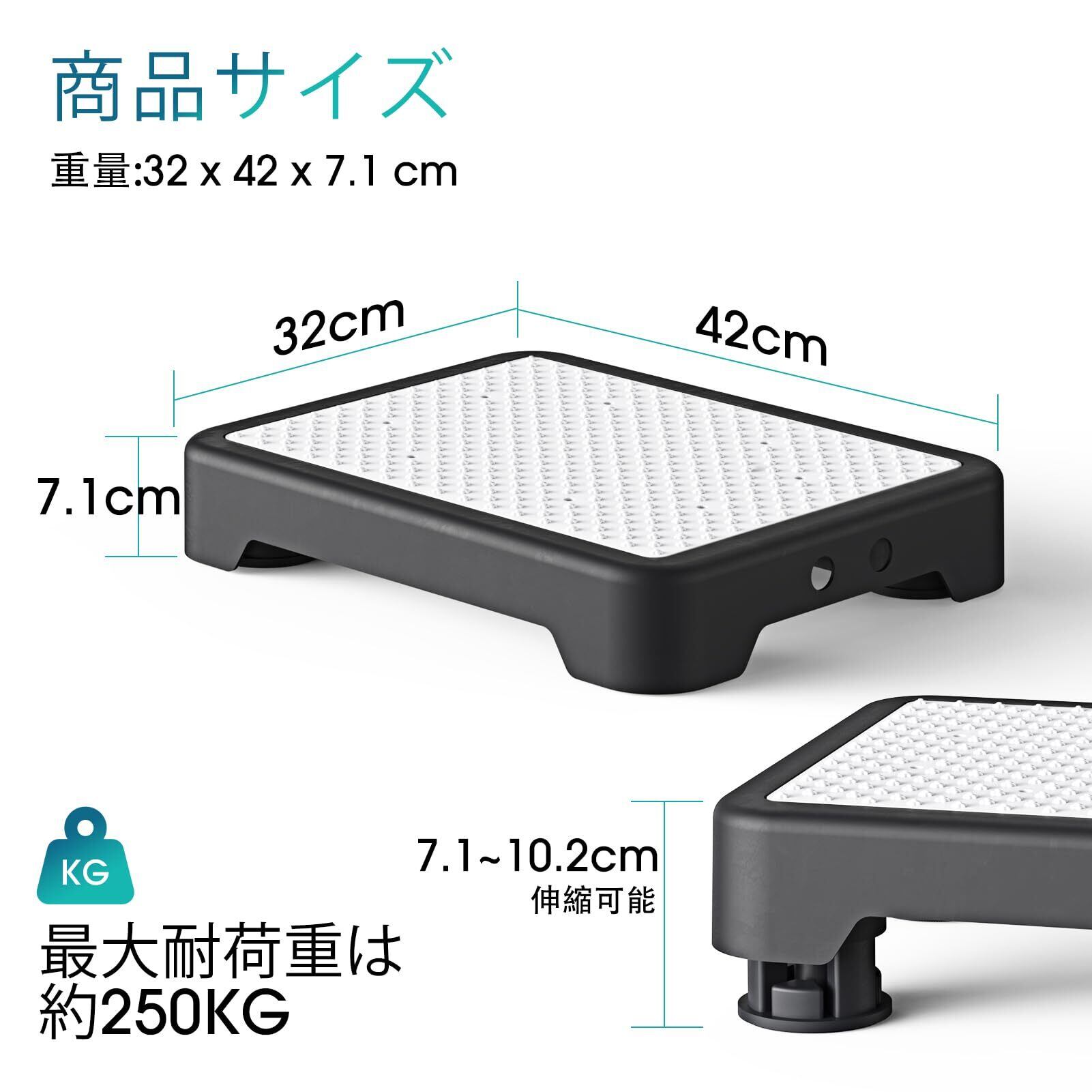 【段差解消・伸縮可能】本体幅42*奥行き32*高さ7.1~10.2cm省スペースのコンパクト踏み台です。ちょうどいい9.5 cmの高さ、玄関や床の段差が解消できます。 ※踏み台は長方形に設計されています。 踏む時は、足を真ん中の位置に近づけ、端の位置を踏まないようにしてください。