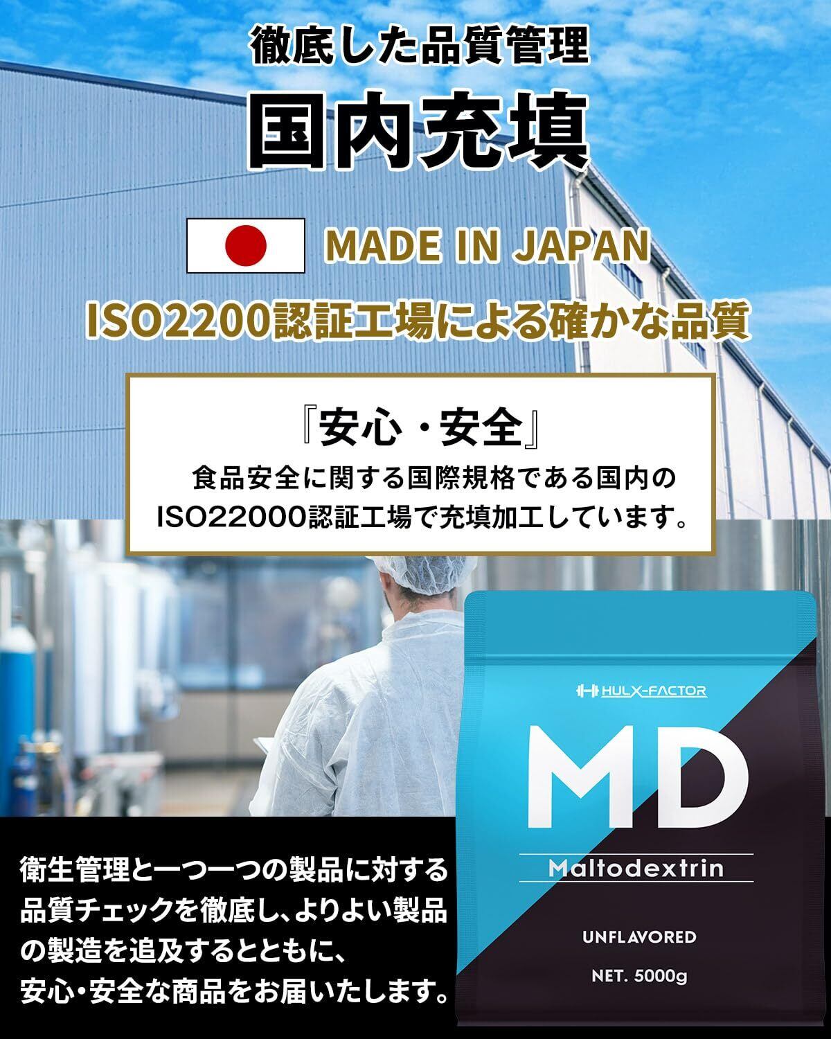 【香料・人工甘味料不使用】国内製造のマルトデキストリン 100%植物由来原料を日本国内工場で充填。