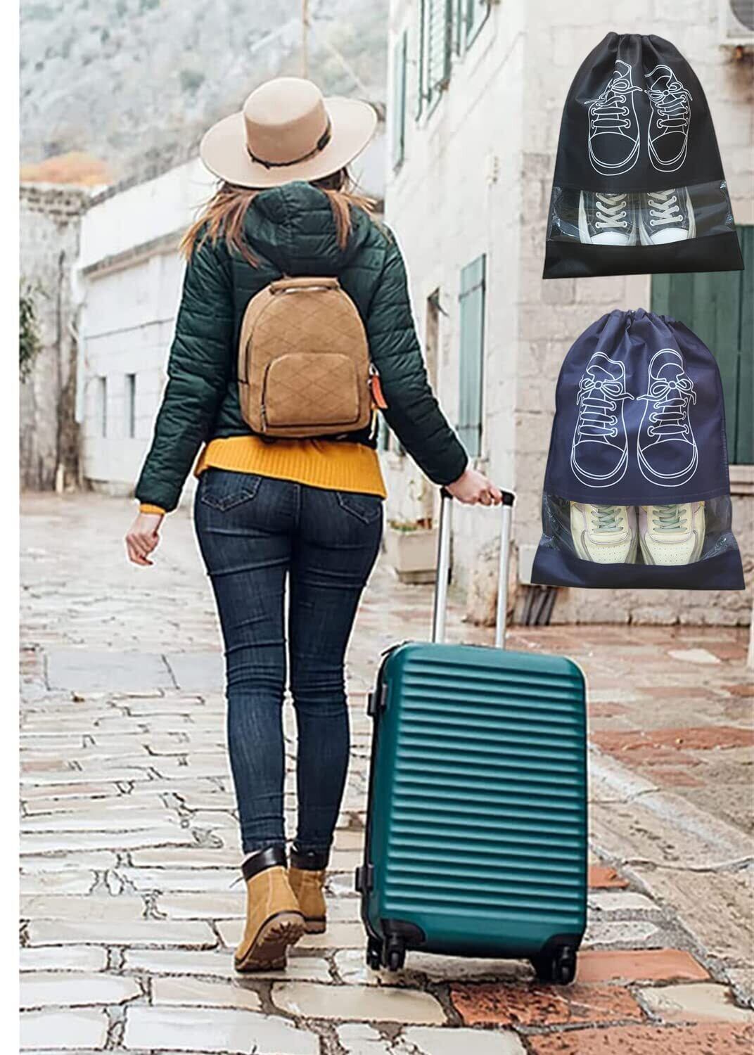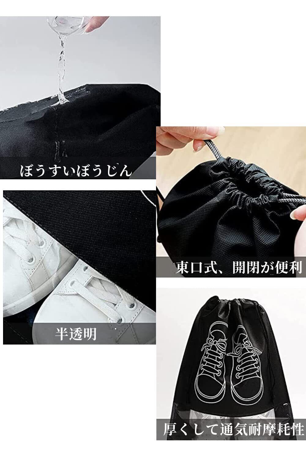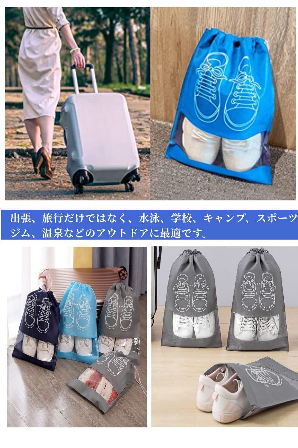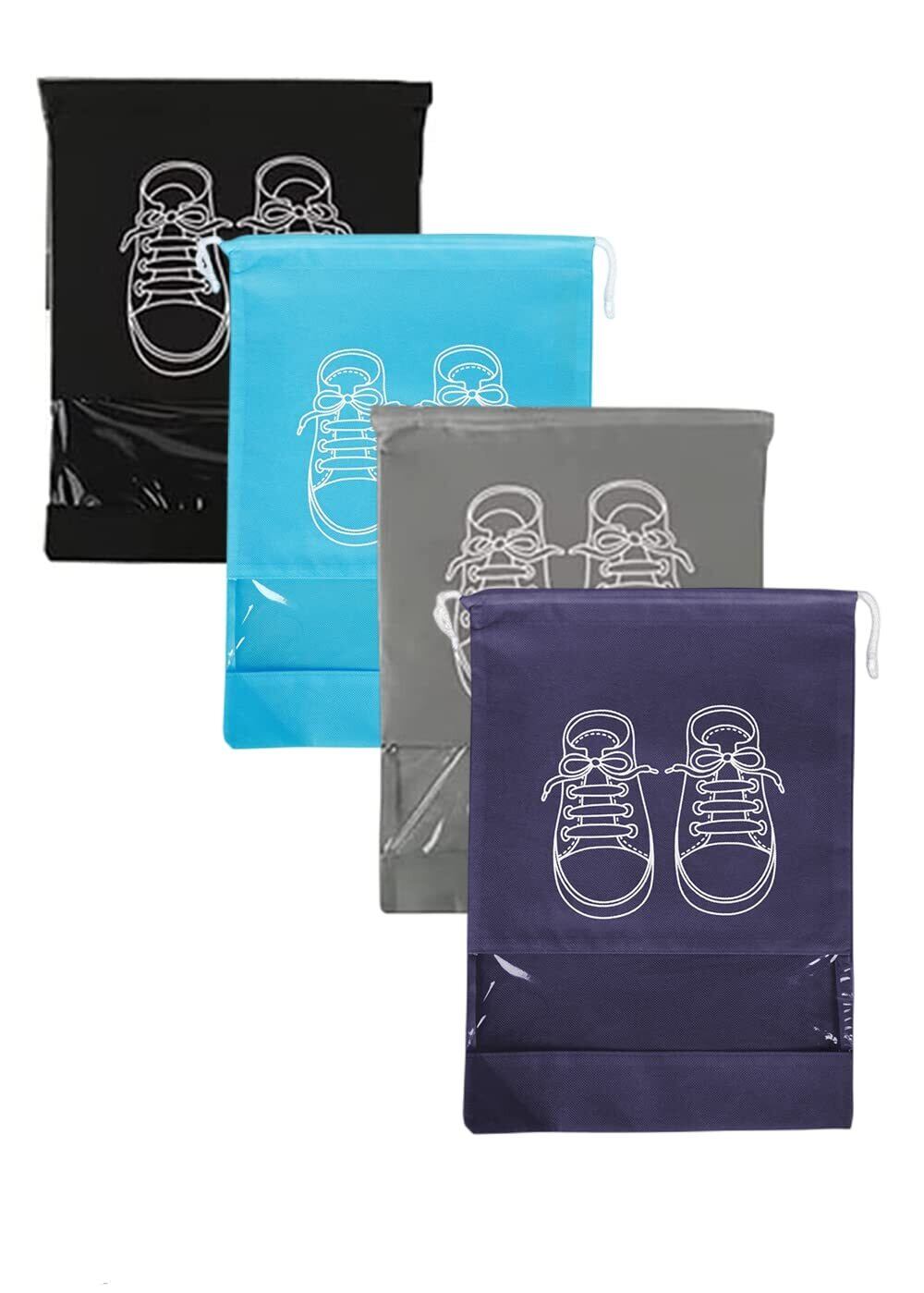 【パッケージ内容】シューズバッグ 4枚セット、色:ブラック、空色、紺、ライトグレー 、大サイズ: 約42cm×28cm