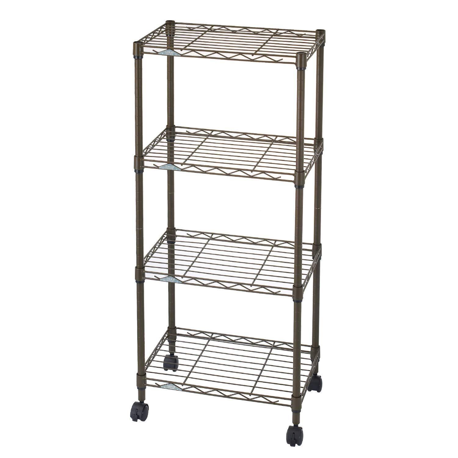 ドウシシャ ルミナス カラーラック ブラウン 4段 幅45 スリム オシャレでかわいい スチールラック 棚 収納 全体耐荷重120kg キャスター付き ポール径19mm 幅45.5×奥行29.5×高さ104 キッチン ランドリー 押し入れ LCR45-4BR