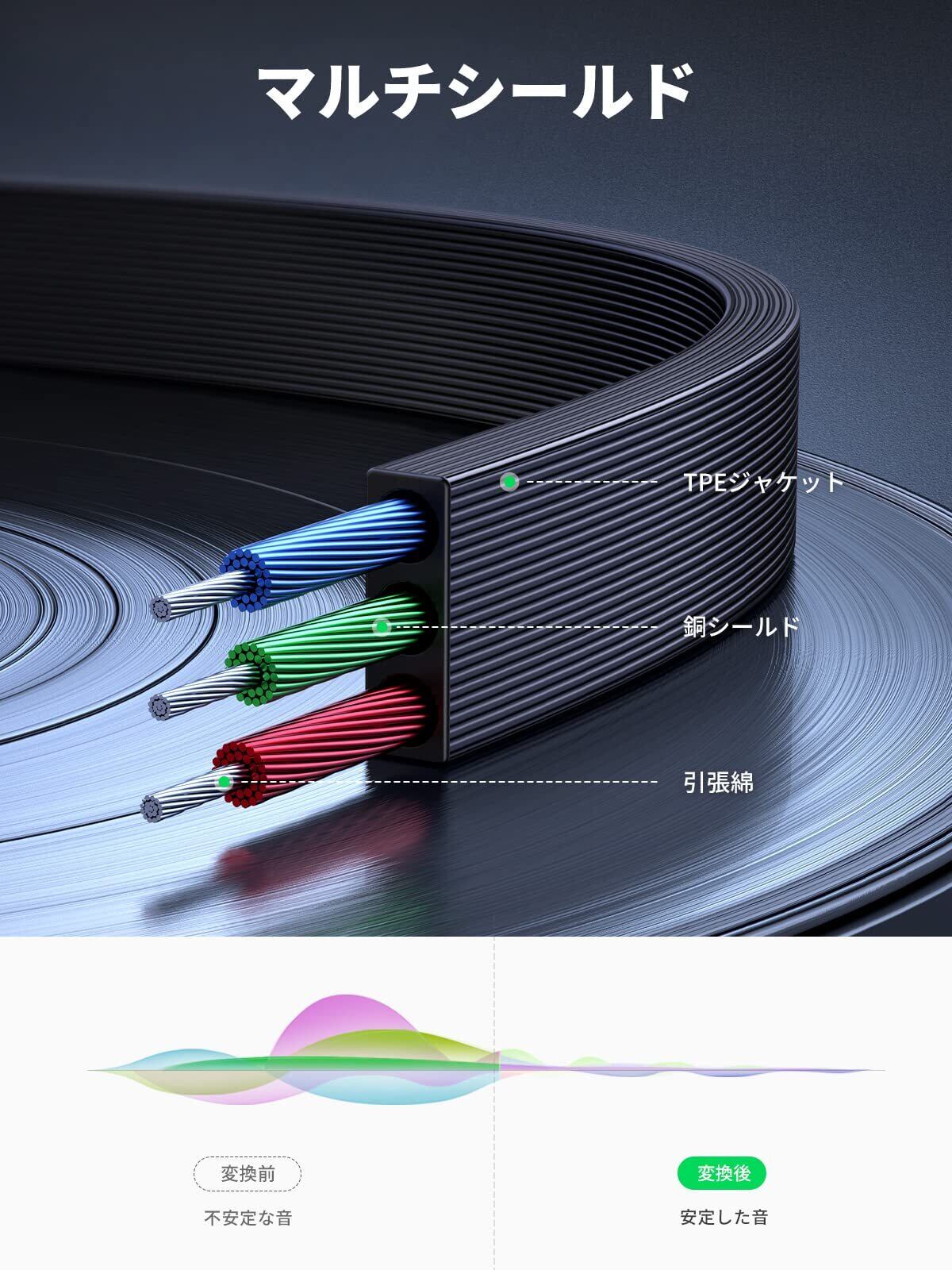 【幅広い互換性】本製品3.5mm 3極 オス-オス ステレオミニケーブルは高い互換性で、スマホ・PC・車・ゲーム機など、様々な機器に使えます。(全ての3.5mmオディオプラグ付く機器に適用)また、どの方向からも同じ感度で収音できる無指向性のオーディオ伝送も可能です。