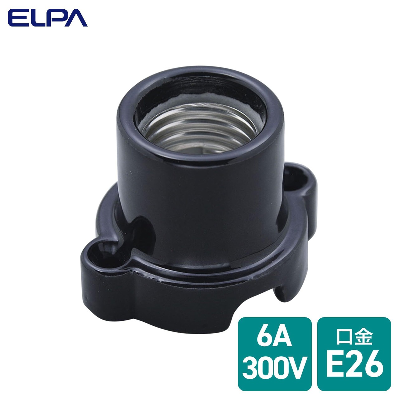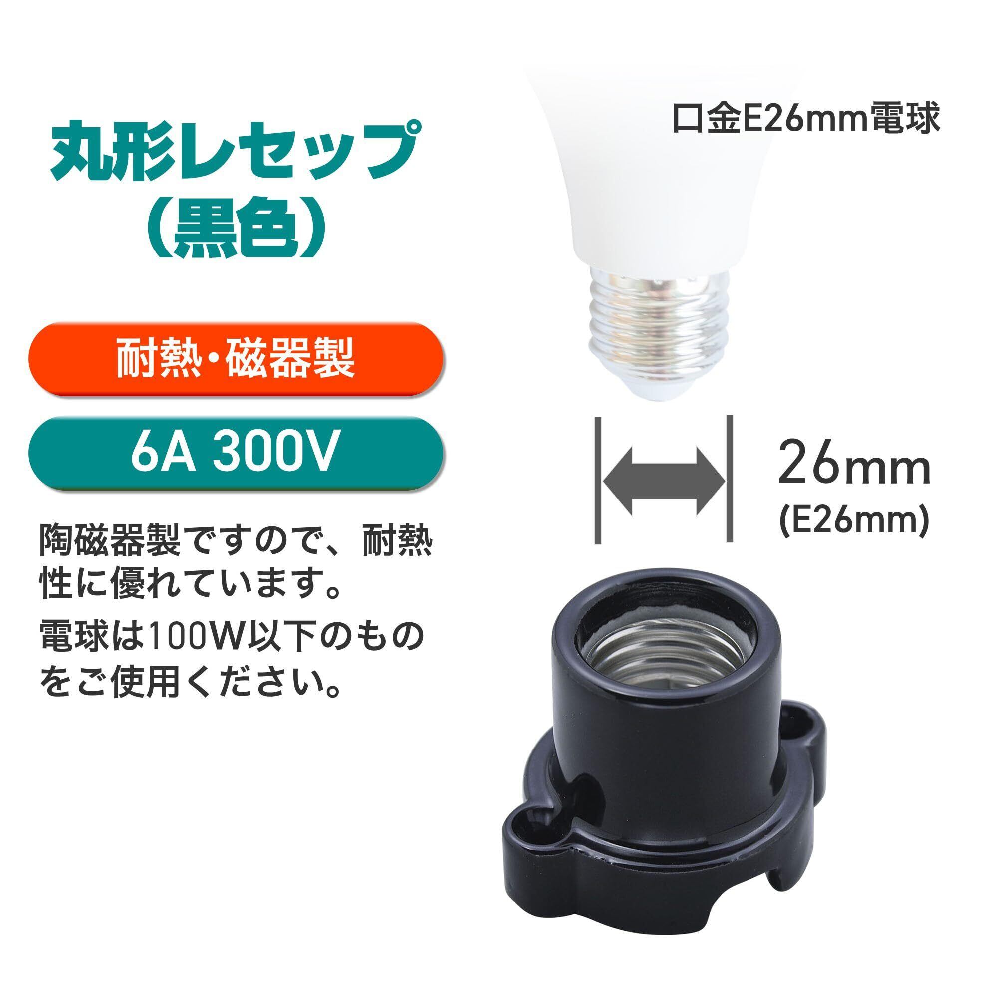 エルパ (ELPA) 丸型レセップ 電球 ソケット 照明 300V/6A E26 ブラック SB-2617H(BK)