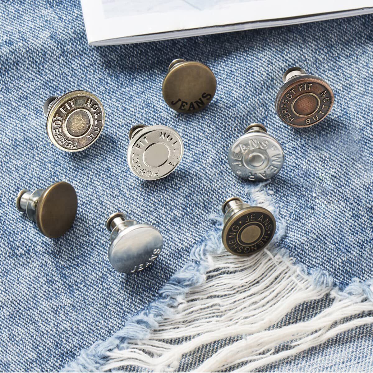 YFFSFDC ジーンズにぴったりのボタンピン、 取り外し可能および ジャンボタンピン縫いなし、 調節可能な金属ボタン、パンツのウエスト増減可能、ジャケット ズボン置換 ボタン便利な収納ケース付き(1セット8個)