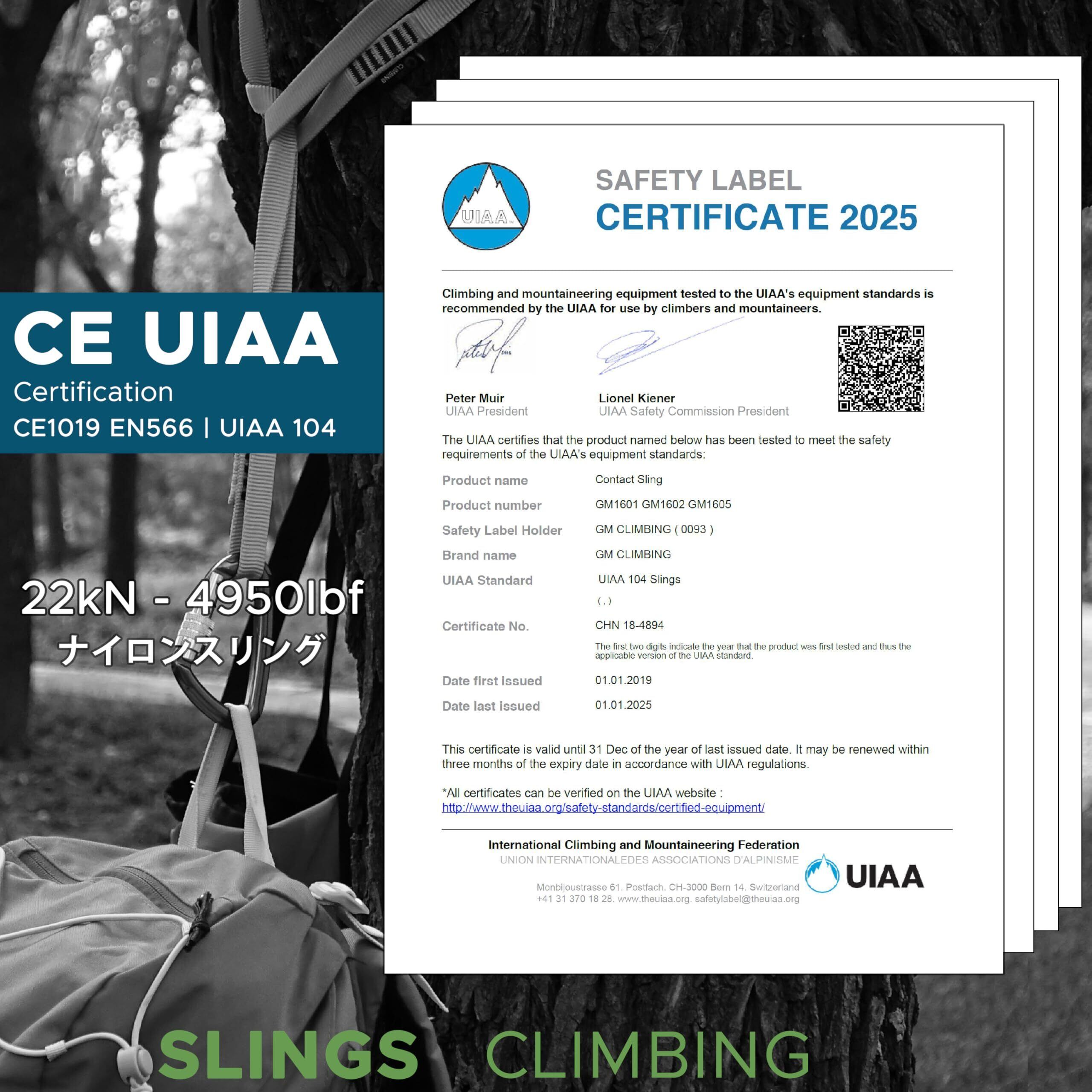 GM CLIMBINGの22kNナイロンスリングは、柔らかくて耐久性に優れ、高強度と軽量化を兼ね備えます。CEおよびUIAAにより認証済み、3サイズがあり、非常に便利で多目的に使用できます。