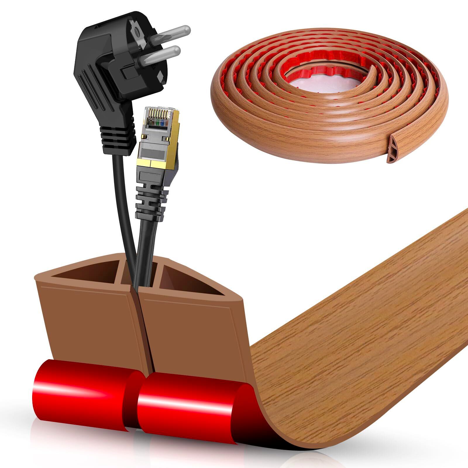 フロアコードカバー 配線モール 木目 ケーブルプロテクター 隠し 配線コード 床用モール 配線カバー ケーブルカバー 収納力良い 延長コードカバー 粘着式 壁用 防水 配線隠し 衝撃に強い上 多機能 自宅、オフィス、倉庫、コンサートに最適 (長3m X 幅3cm, ブラウン木目)