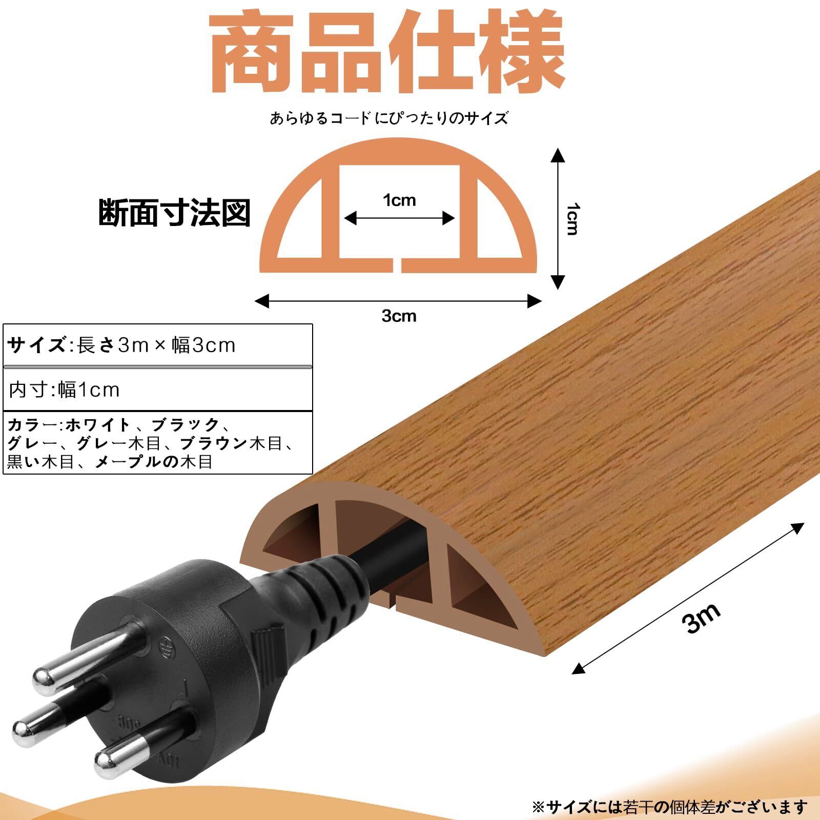 【完璧なサイズ】 配線カバーの長さは3M、幅は3cm、内径の幅は1cm、高さは0.6cmです。約2〜3本のワイヤーを保管するのに適しています。表面は高密度の特殊構造で、滑りにくく、高さは1cmだけで、大人でも子供でもとつまずきにくいです。
