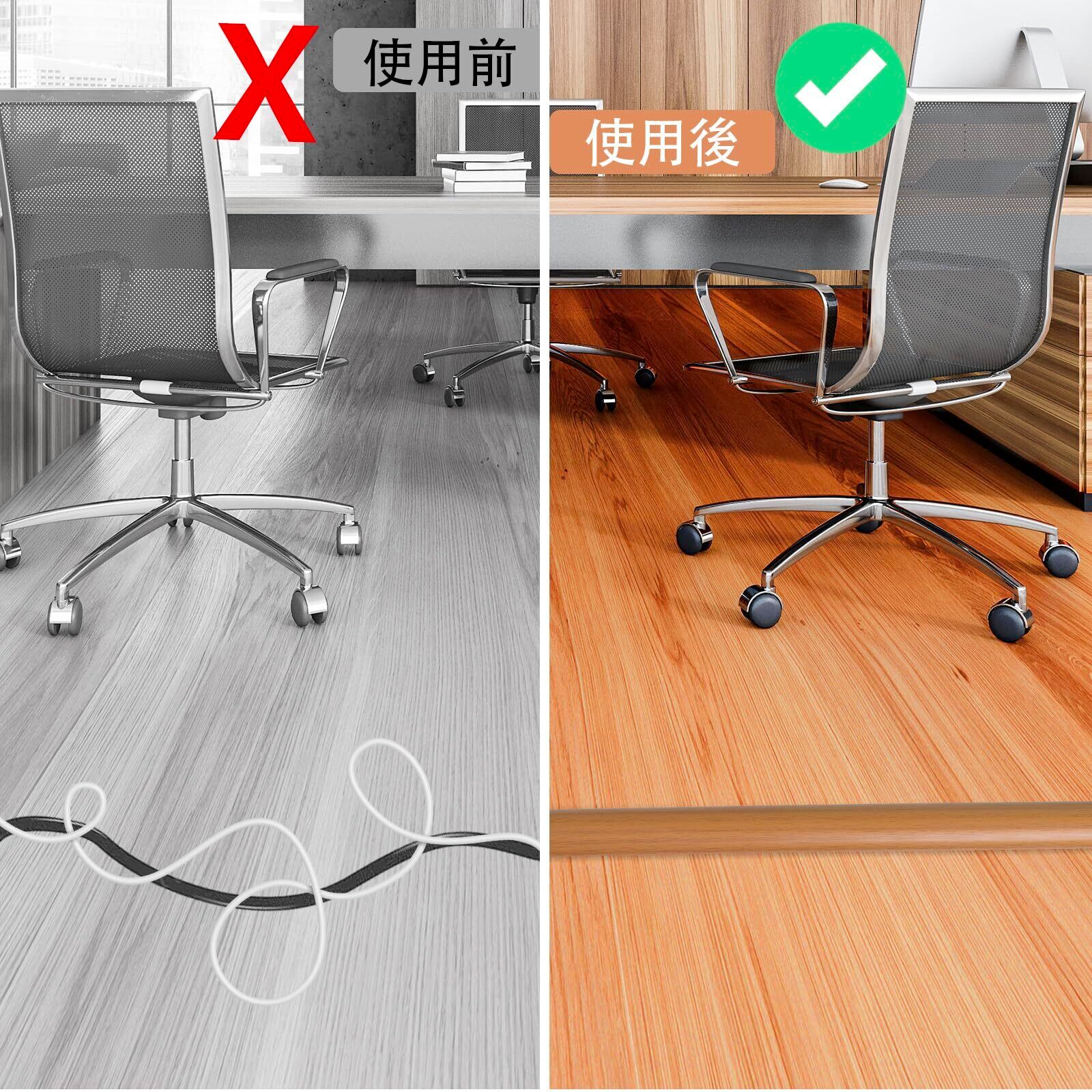 【家族を保護する】コードフロアカバーは 厚さ2mmの特殊高分子PVC素材を使用し、耐摩耗性に優れ、耐衝撃性があり、十分な緩衝力を備えており、椅子にぶつけてもワイヤーをしっかりと保護できます。