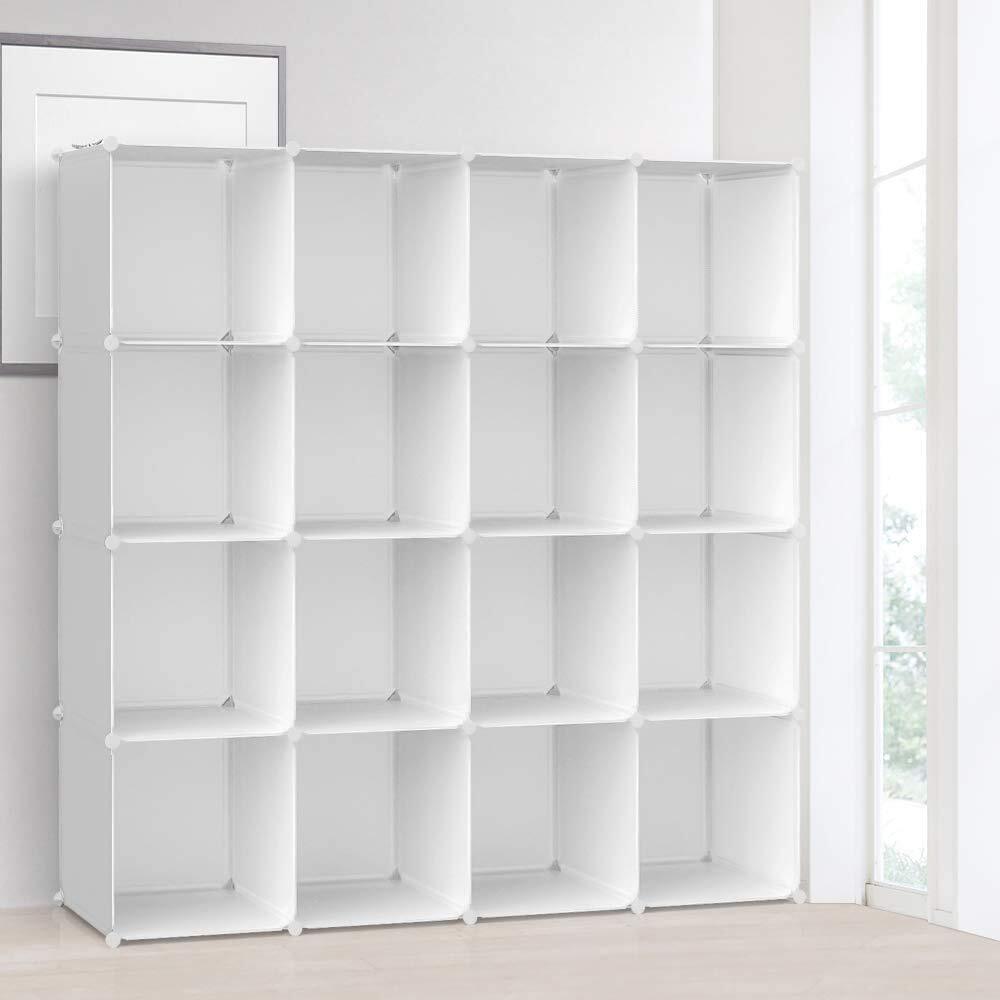 Vacplus 収納棚 大容量 収納ラック 組み立て式 整理棚 収納ボックス 本棚 衣類収納ボックス 多用途 耐久性 省スペース 収納便利 ブラック 1個幅30×奥行30×高30㎝ 16ボックス (ホワイト)