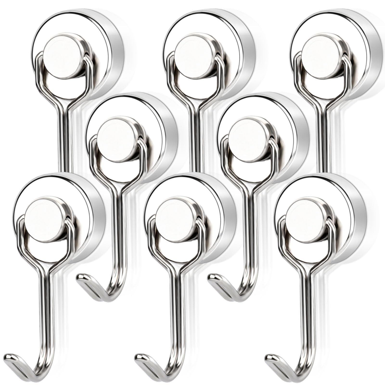 MAGXCENE 8個セット マグネットフック 直径2cm 超強力 磁石フック 垂直耐荷重15kg 回転式 収納 フック 金属製 磁石付き キッチン 玄関 冷蔵庫 オフィス キー 壁掛け用