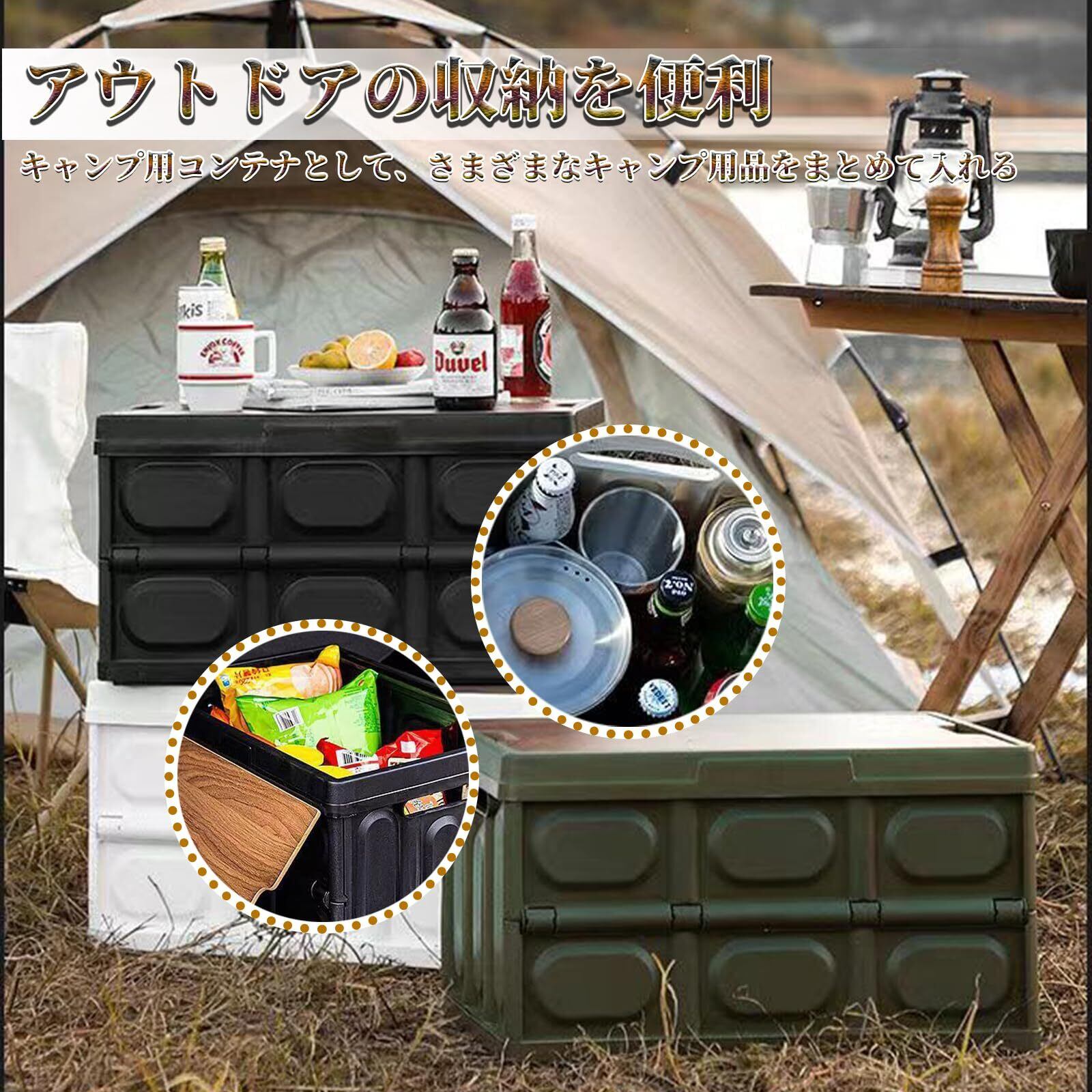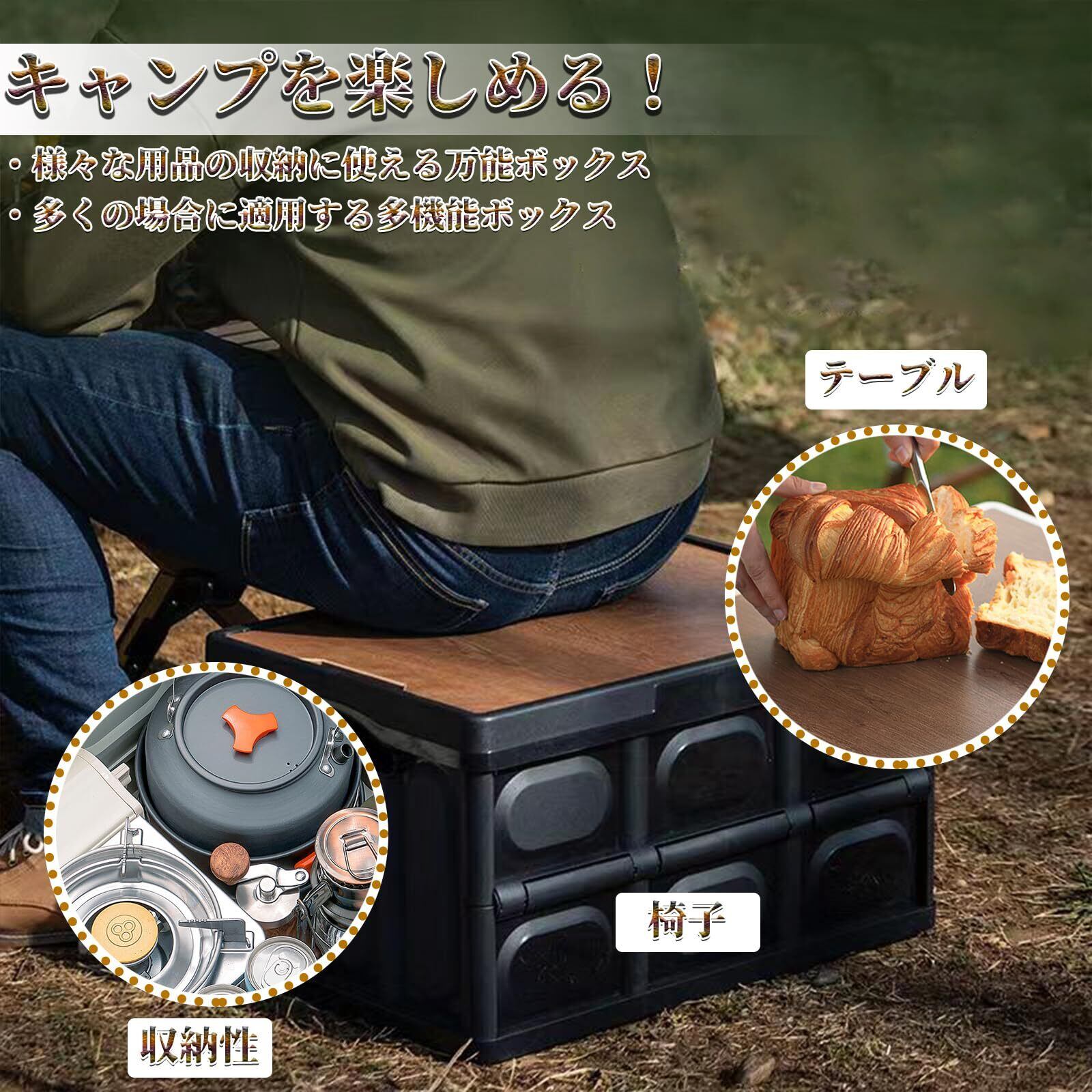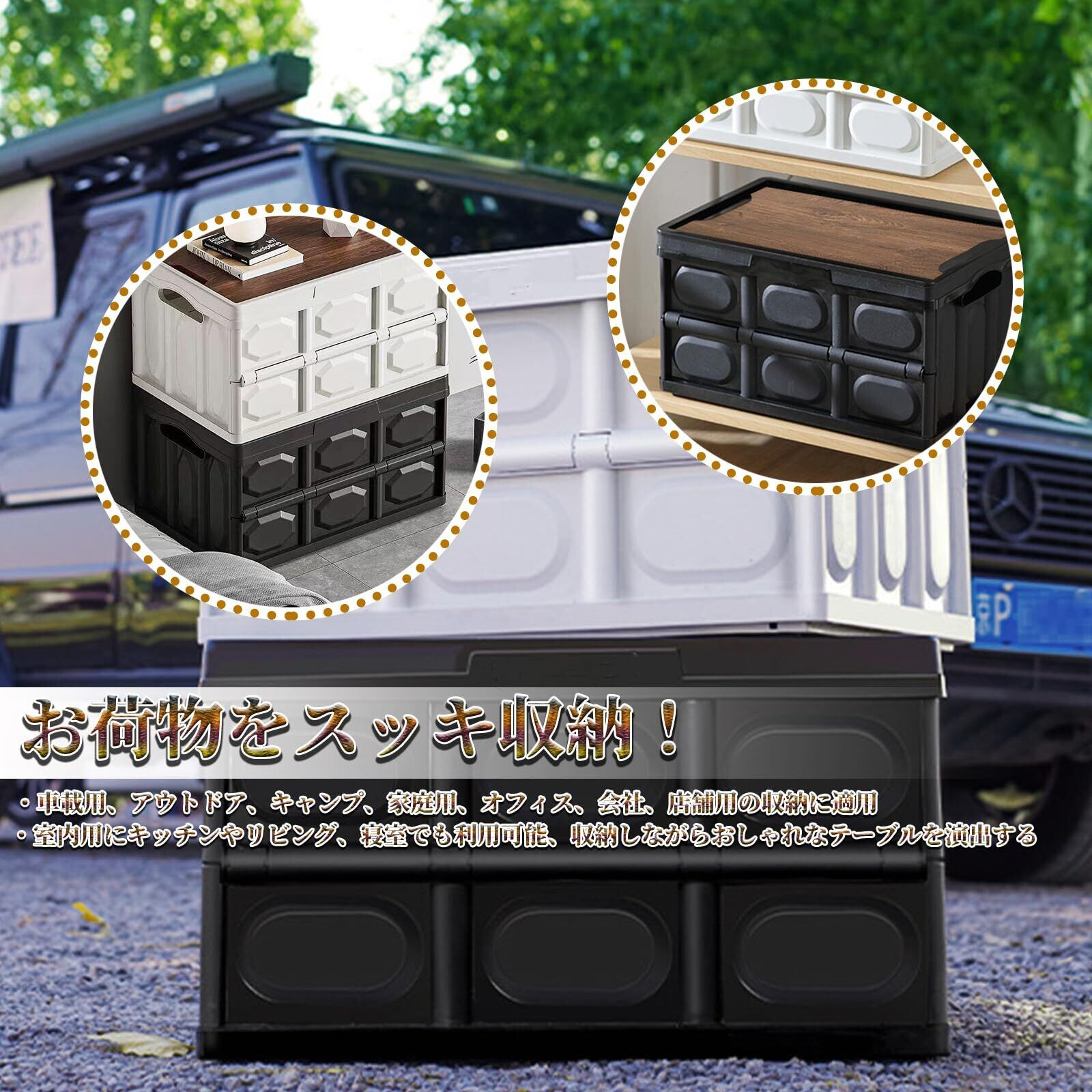 【汎用性・多用途】収納ボックスは車載用、室外用、アウトドア、キャンプ、家庭用、オフィス、会社、店舗用の収納に適用することができます。車載用ではトランクに水、道具などの小物収納にも大活躍します。車内の快適性を高め、車のグレードが向上し満足感を得られます。また、室内用にキッチンやリビング、寝室でも利用可能、収納しながらおしゃれなテーブルを演出できます。アウトドア用にキャンプやピクニックに調理器具や小物キャンプ用品はたくさん収納できます。