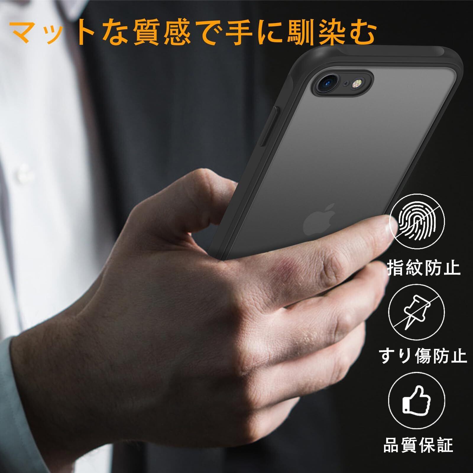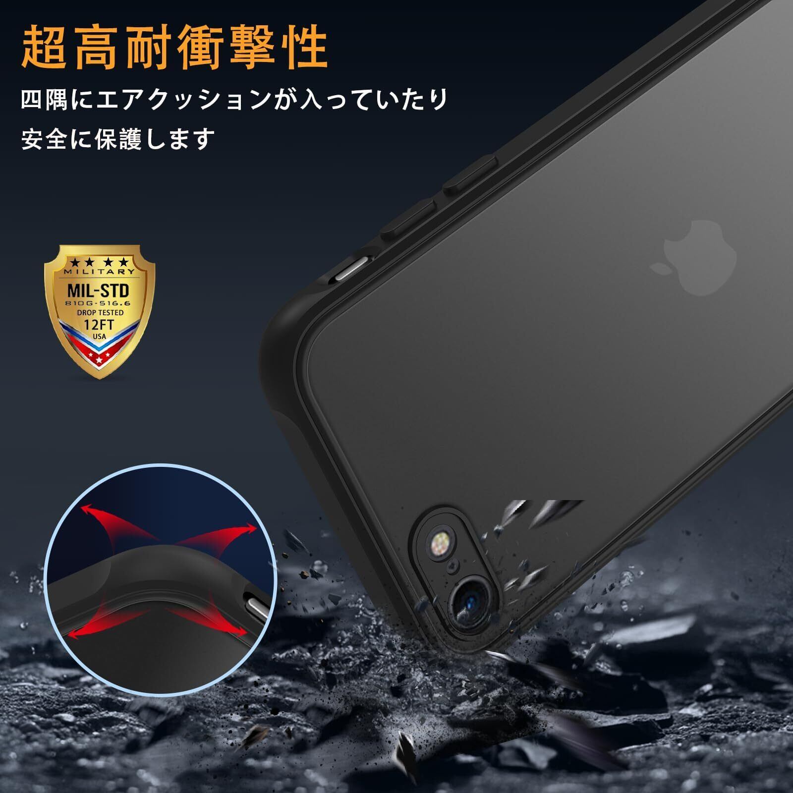 iPhone SE ケース 第3世代 第2世代 iPhone 8/7 ケース マット 半透明 スマホケース 米軍MIL規格 耐衝撃 ワイヤレス充電 黄ばみなし 指紋防止 アイフォン SE3 SE2 7 8 用カバー 4.7インチ PinLiSheng(ブラック, iPhone SE2 iPhone SE3 iPhone8 iPhone7)