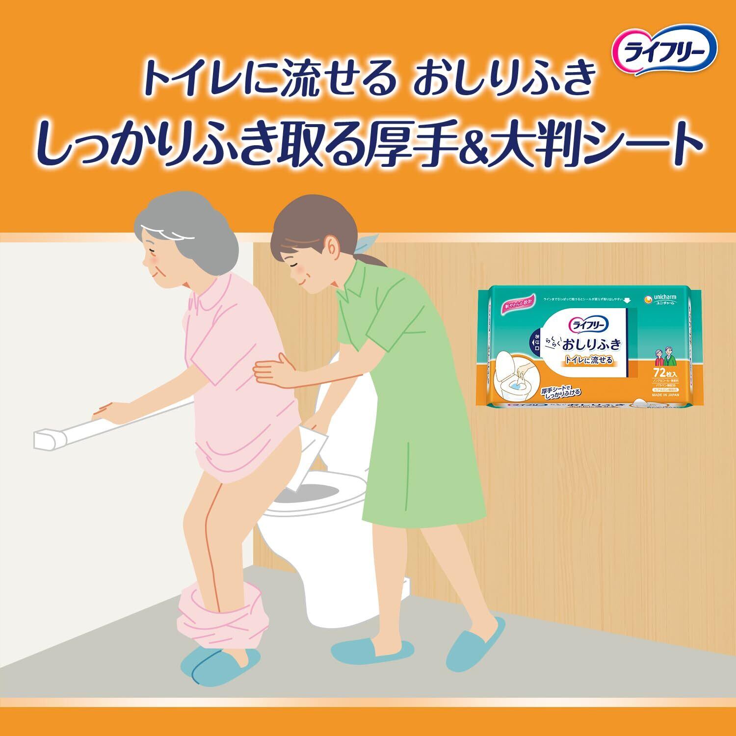 ライフリー らくらくおしりふき トイレに流せる 432枚(72枚×6) 日本製 介護 大人用 高齢者【おしりふき】