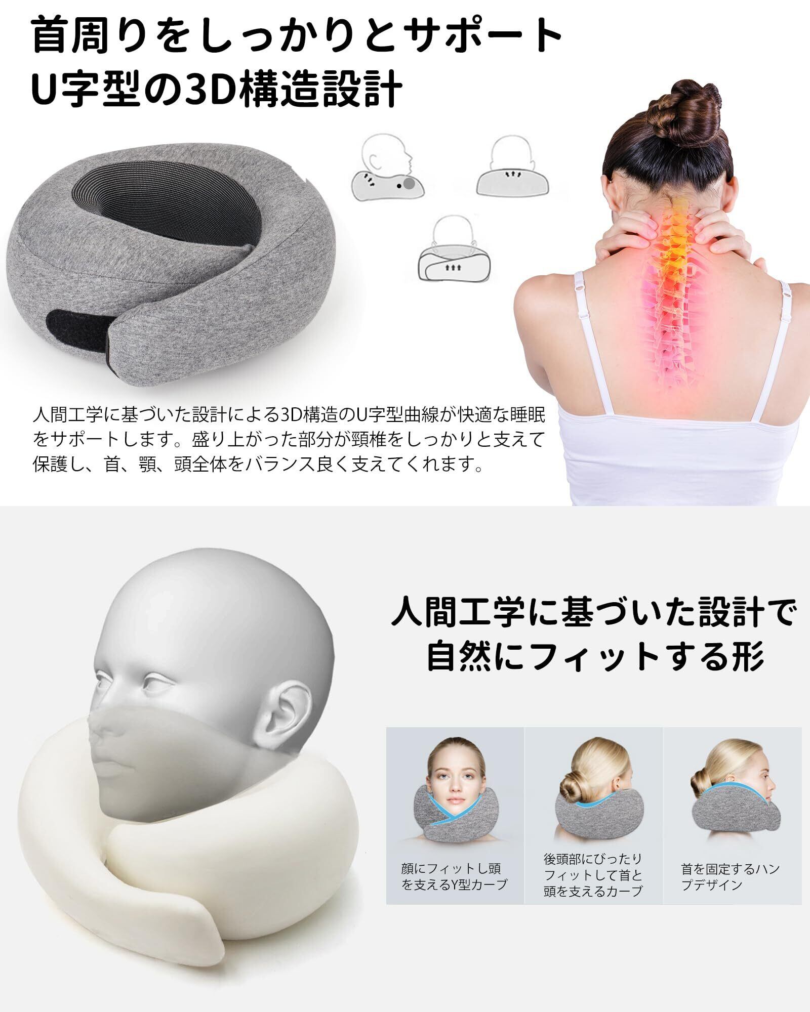 Melvint ネックピロー 低反発 首枕 飛行機 U型 携帯枕 コンパクト ストレートネック 枕 カバー洗濯可 持ち運び便利 エアー枕 旅行 便利グッズ 車 夜行深夜バス 新幹線 ソファ 椅子 旅行 お昼寝 仮眠 防災用 グレー