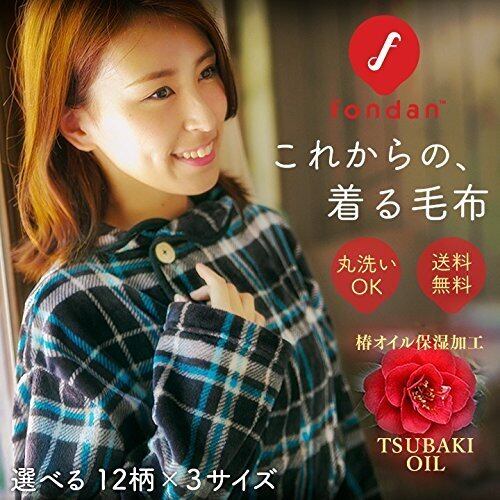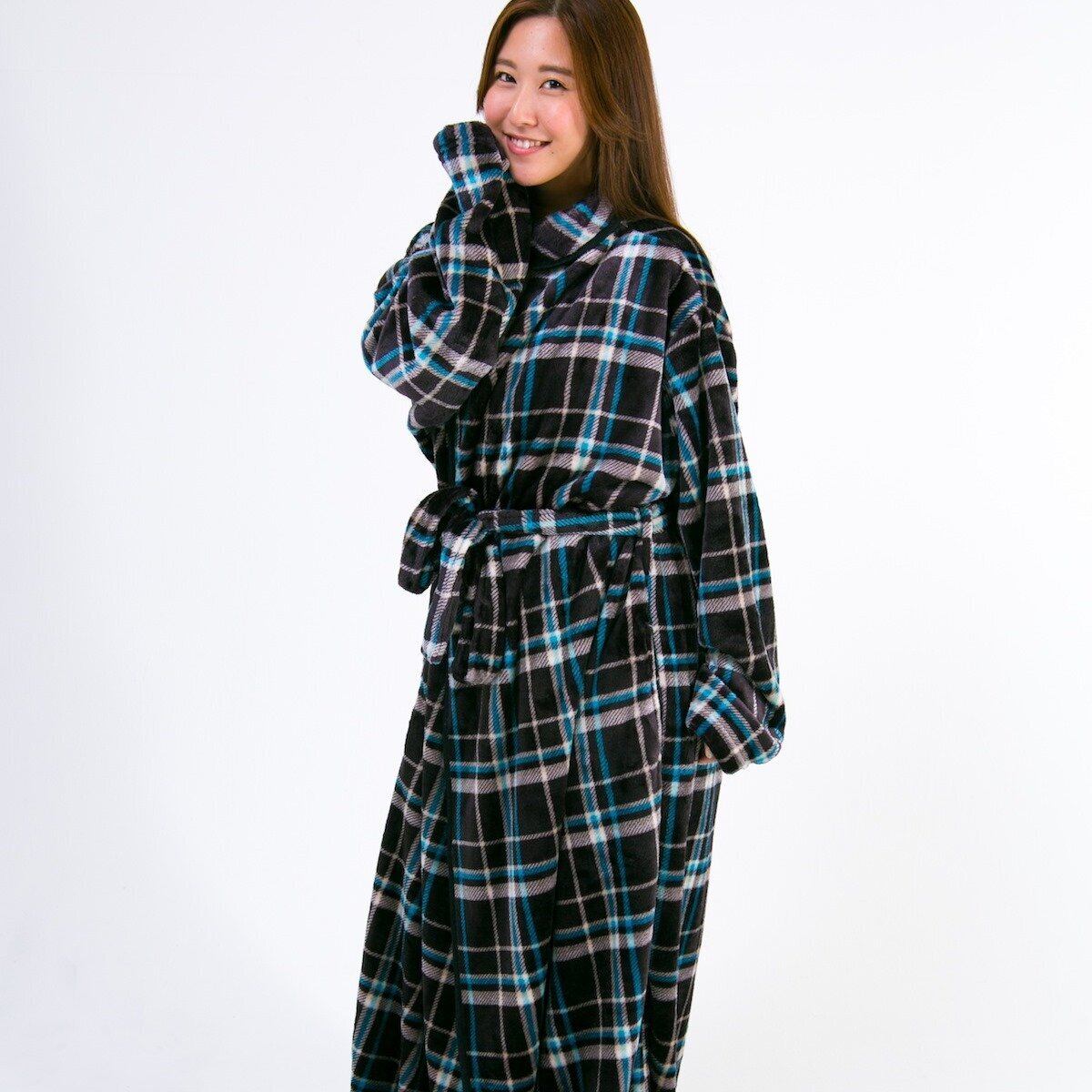 アイリスプラザ fondan 着る毛布 ポケット・ベルト付 特製BOX入り Mサイズ 着丈150cm チェック柄 ブラック×ブルー 静電気防止 洗える フランネルマイクロファイバー 部屋着 クリスマス ギフト ルームウェア