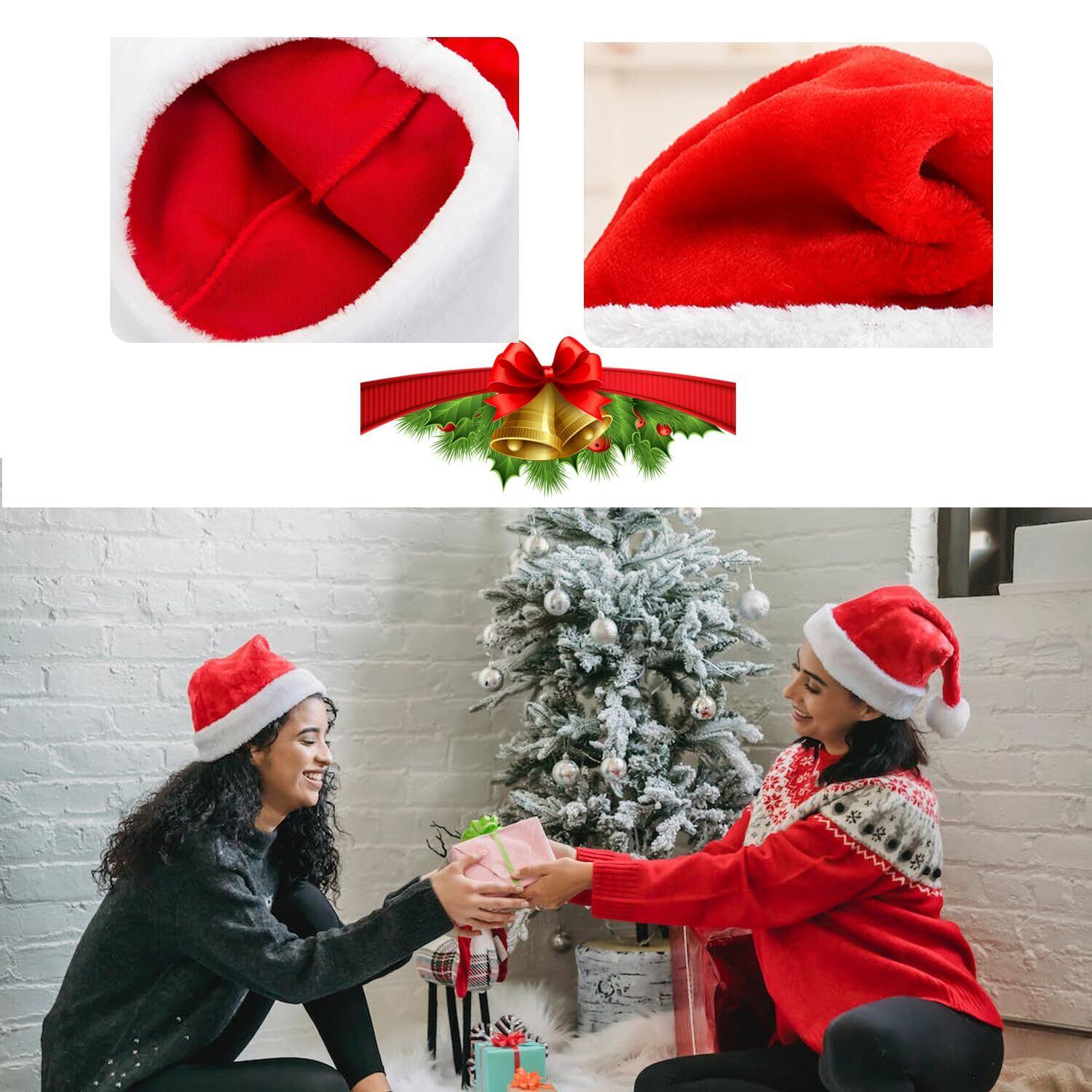 【素材】シャギー。優れたベルベット生地で作ったYOAYAO サンタ 帽子は柔らかく、着心地抜群です。柔らかく快適な生地で、肌や髪に優しいです。お気軽にでクリスマスの仮装お楽しみ下さい。